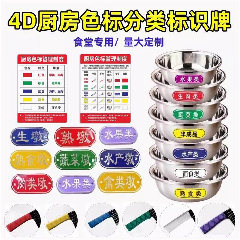 厨房4D6T学校餐饮食堂幼儿园刀具套菜墩砧板生熟牌不锈钢菜盆色贴