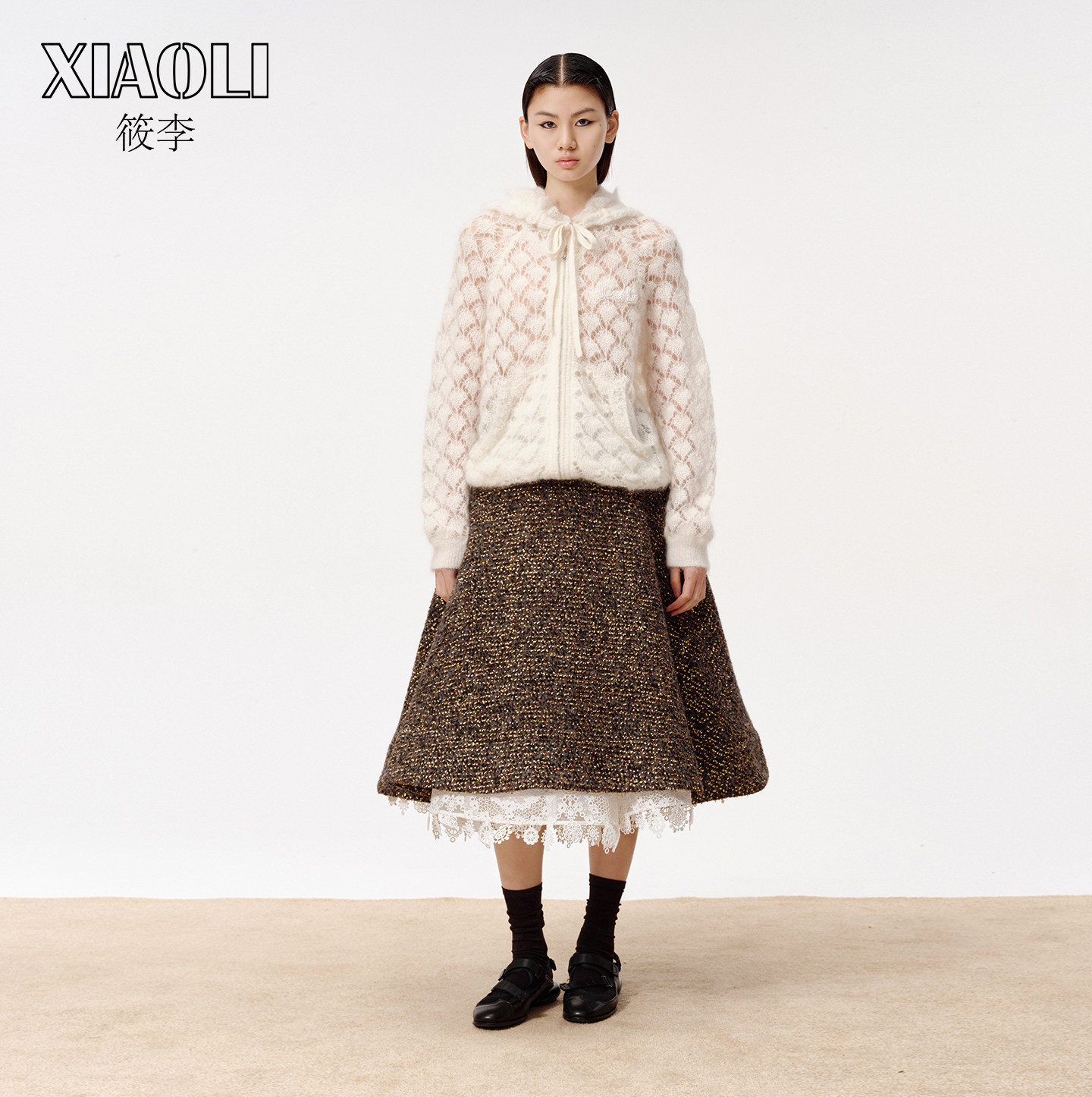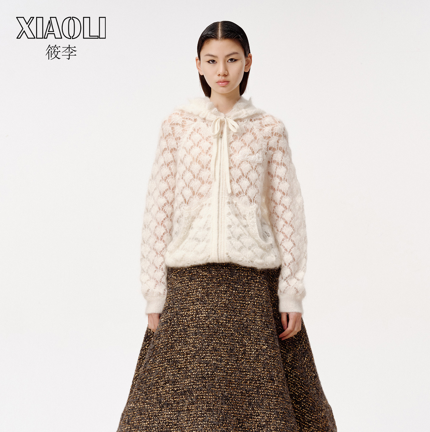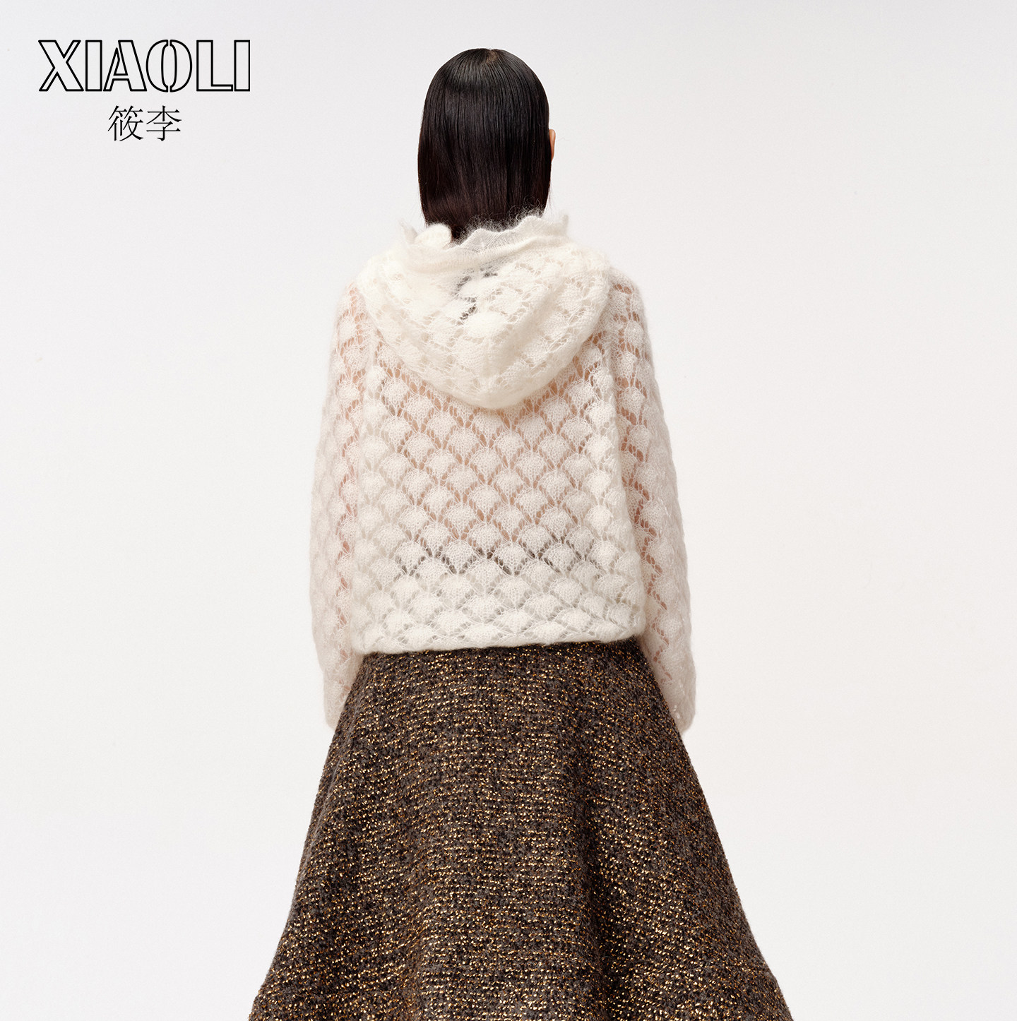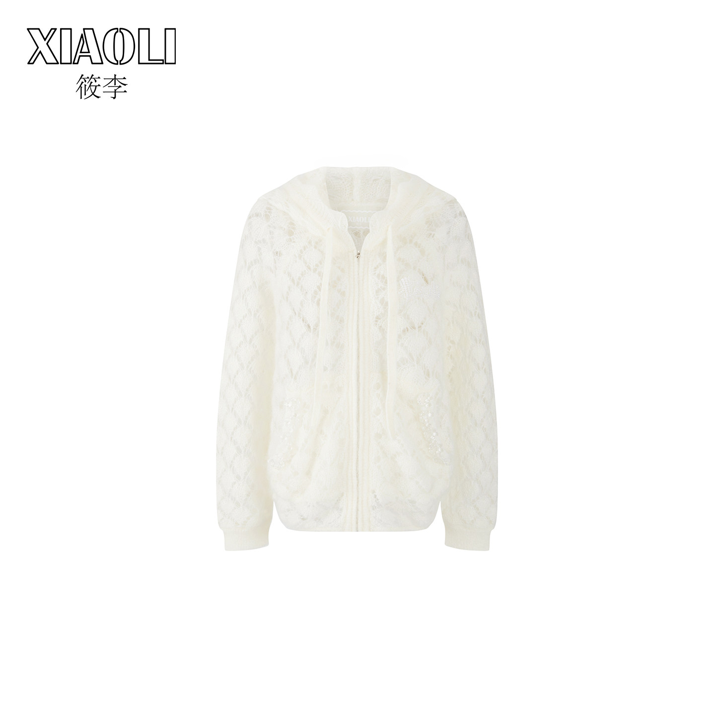 【XIAOLI筱李】菱格蕾丝肌理白色马海毛挑孔针织开衫25秋冬新品