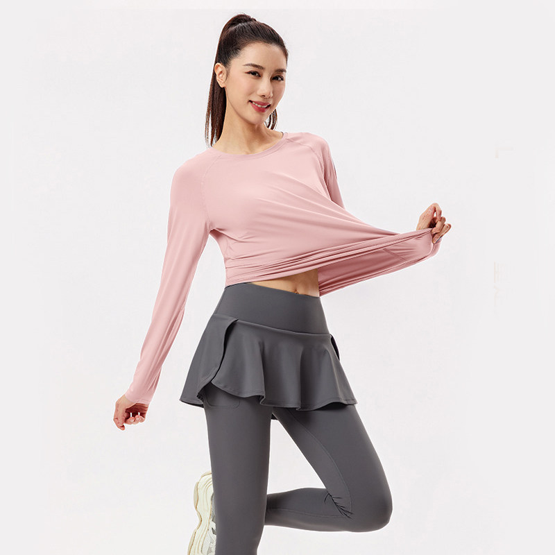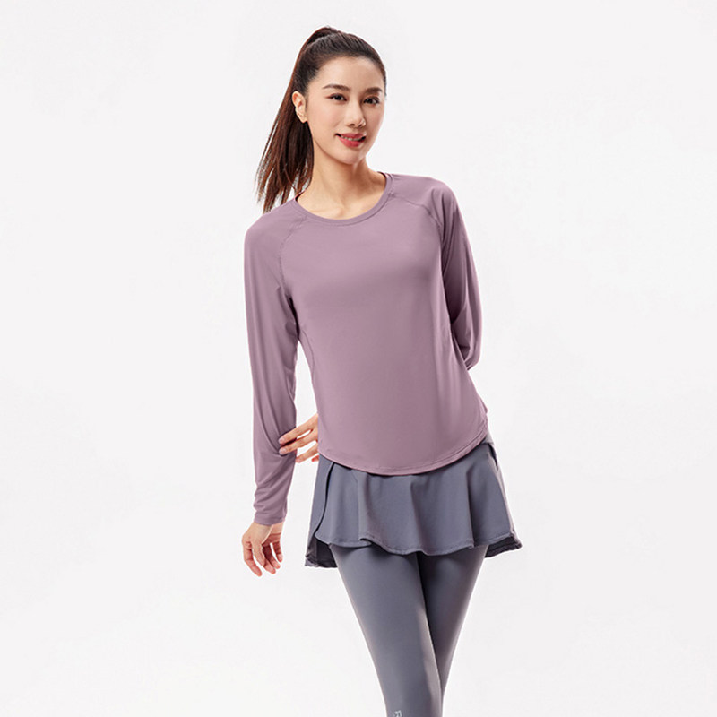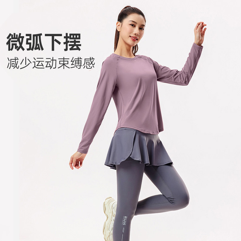 2025新款瑜伽服女长袖T恤透气宽松运动上衣罩衫健身服速干普拉提