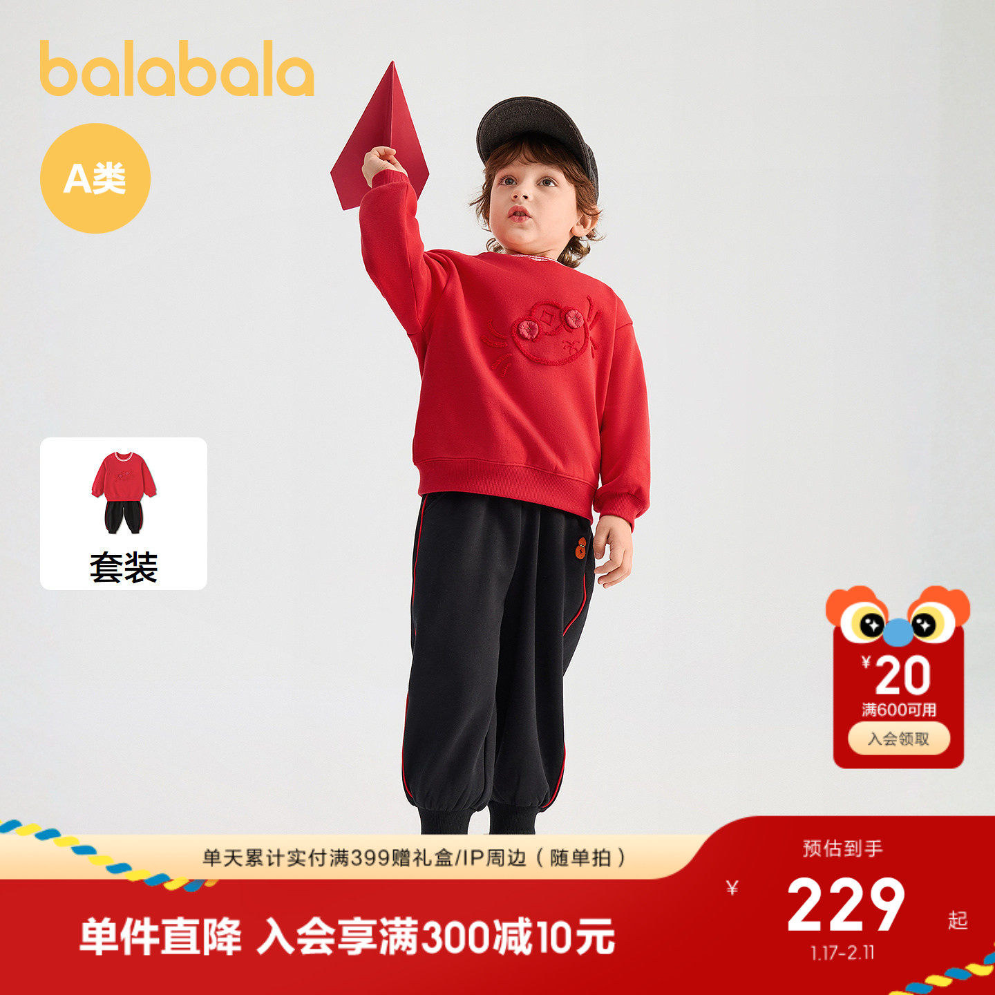 【商场同款】巴拉巴拉童装儿童套装男童2026年新款春秋红色拜年服