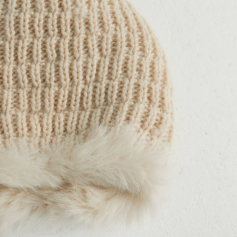 Classy key新加坡设计师联名款加厚皮草保暖毛线针织帽兔毛帽子女