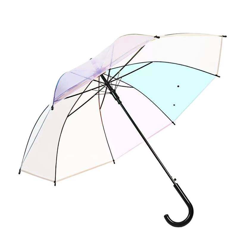 ins韩风时尚梦幻七色彩虹颜色透明雨伞小清新大人自动长柄伞手动
