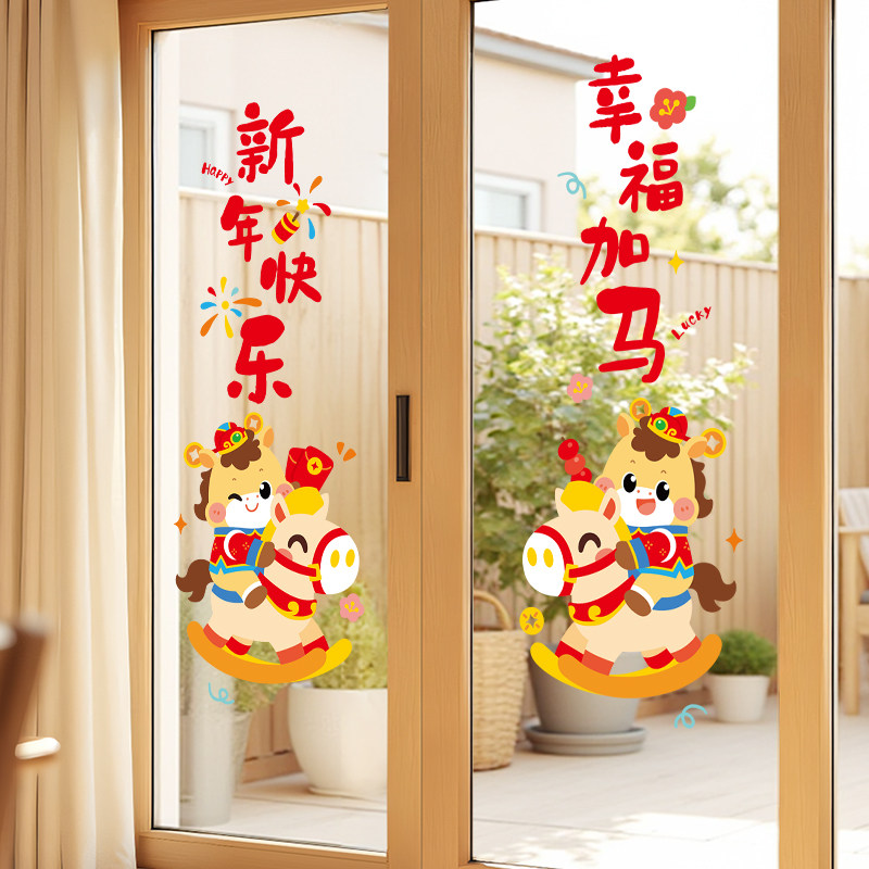 2026新年窗花马年装饰新款玻璃门贴纸静电橱窗贴春节氛围布置贴画