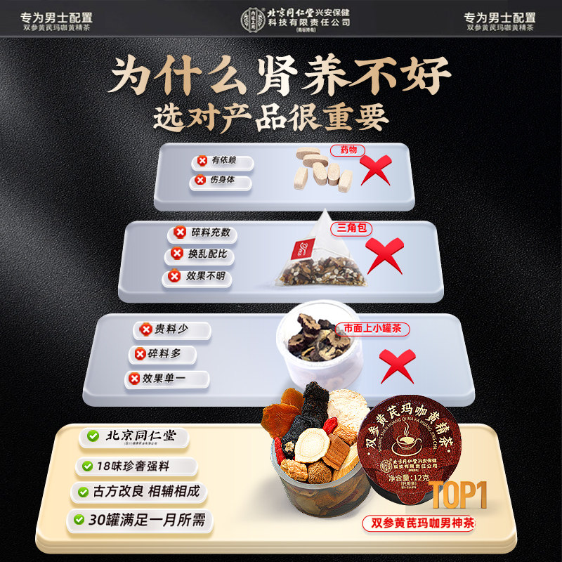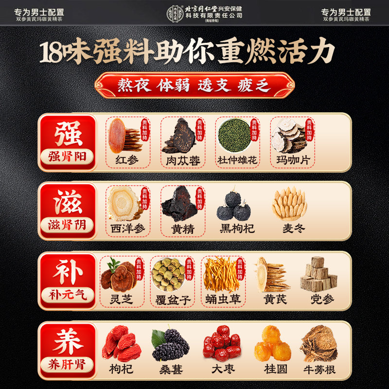 北京同仁堂八宝茶肉苁蓉人参黄精枸杞五宝茶男士强肾补精养生茶包