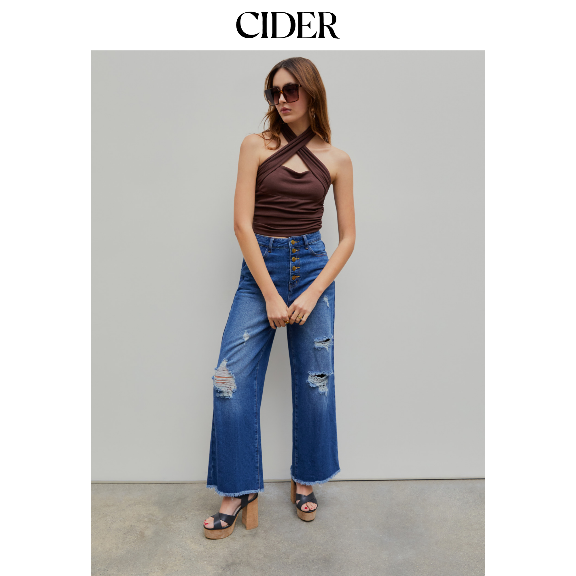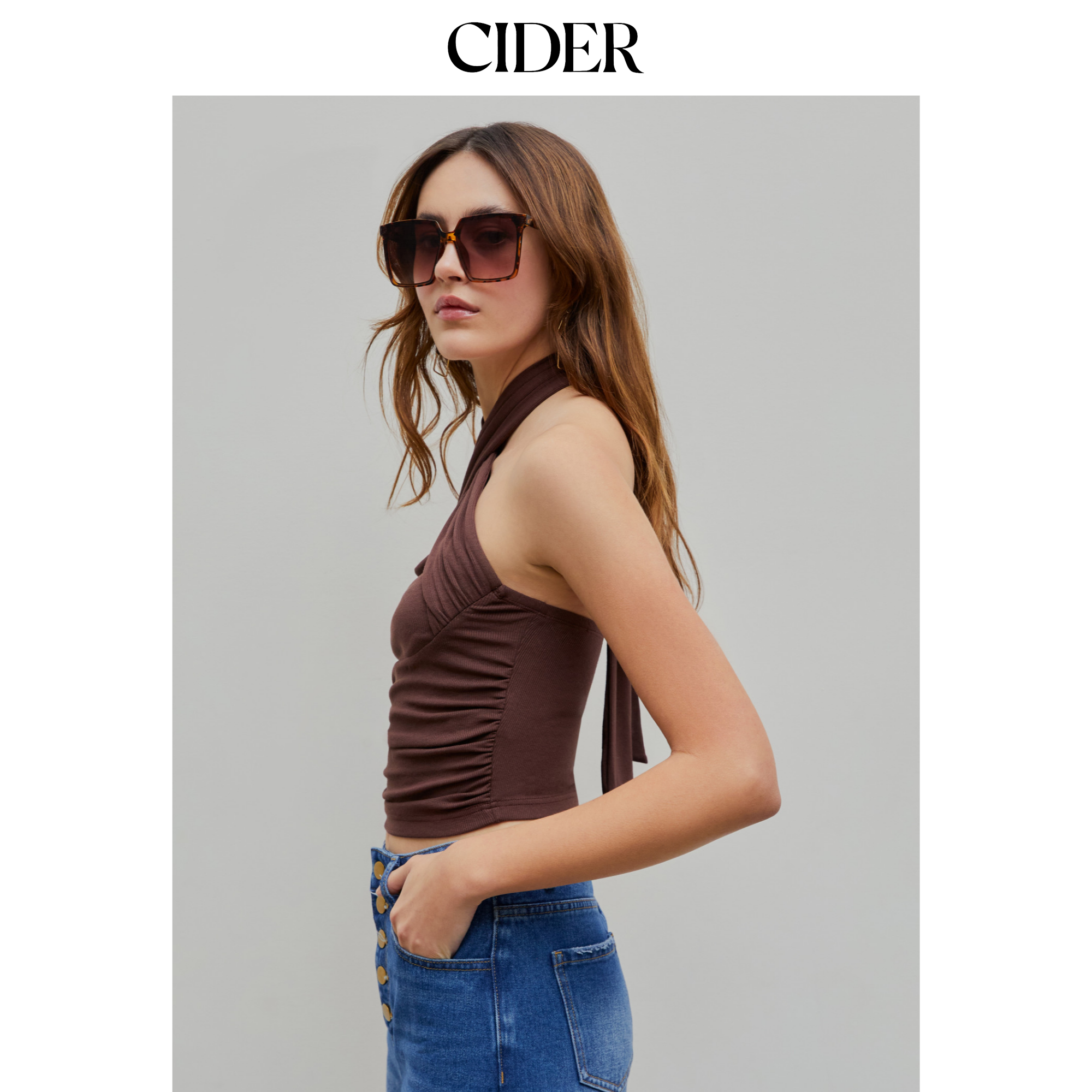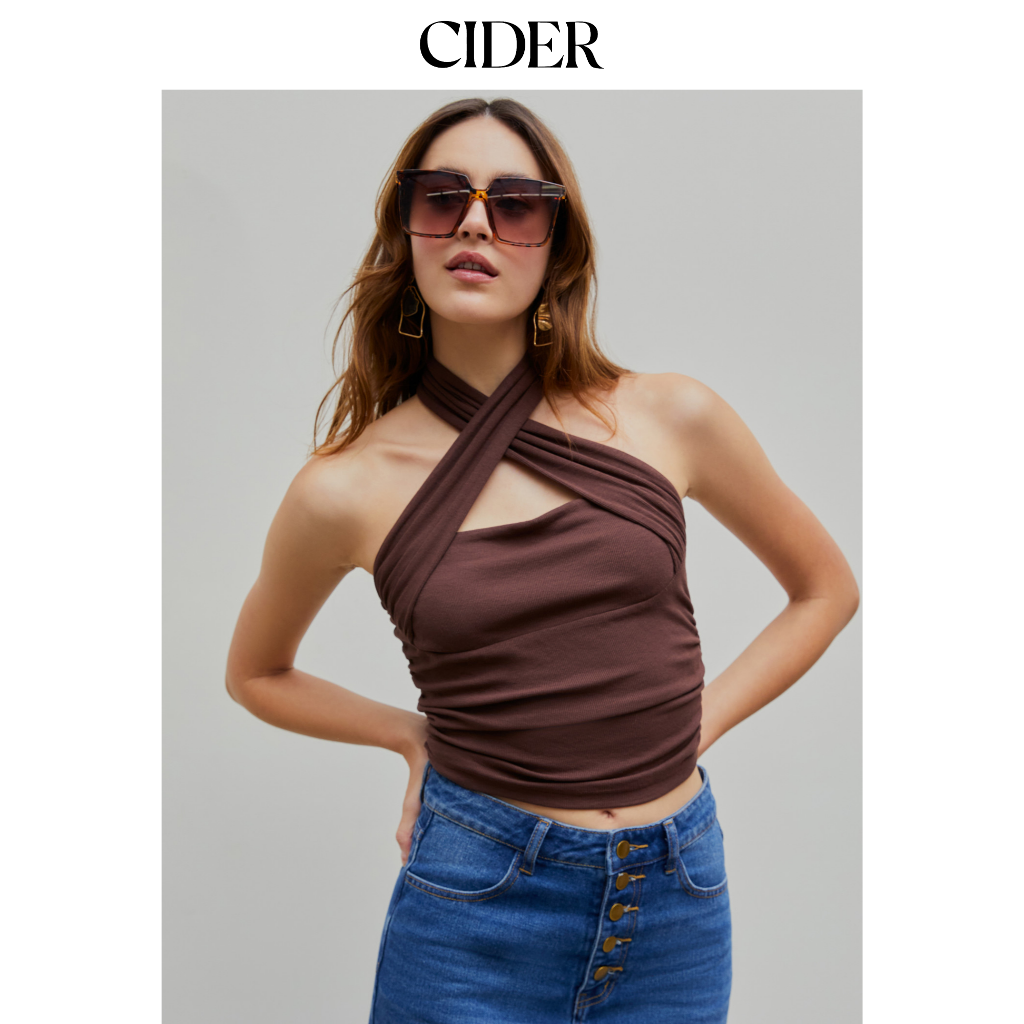 【明星同款】CIDER 正品色挂脖短款两用上女装衣 1030807