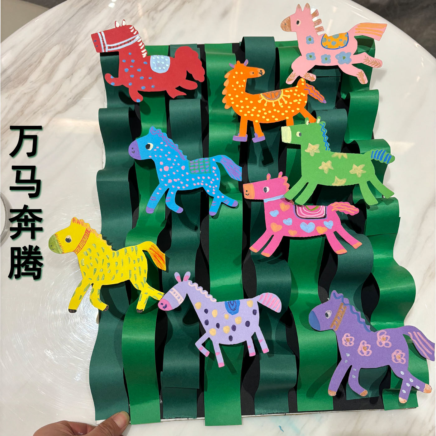 幼儿园小学儿童手工立体马年新年手工材料包万马奔腾裁剪好的彩色小马