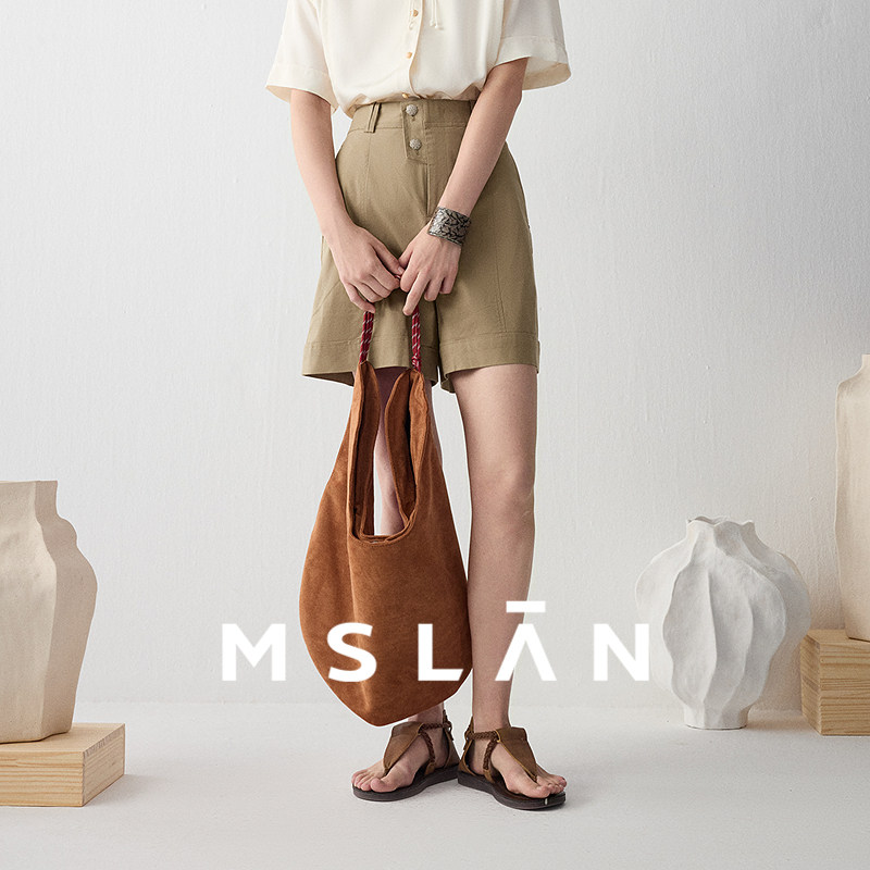 【半松紧腰】MSLAN春夏时尚卡其色两粒扣宽松棉质短裤MFCE6102