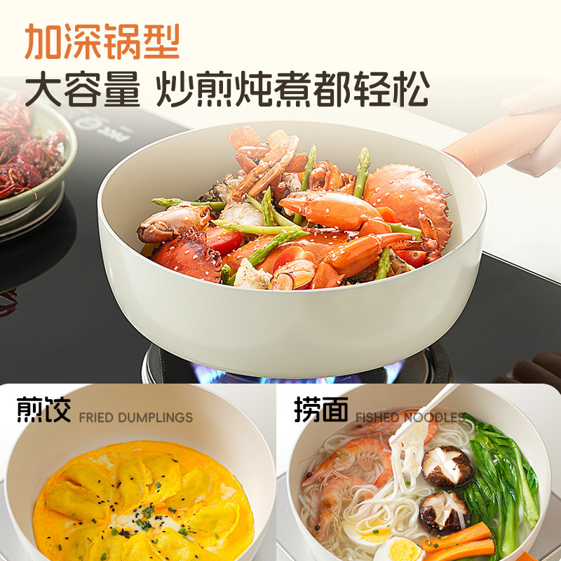 钛红芯控温平底锅不粘锅家用无涂层炒菜煎蛋牛排电磁炉专用深煎锅