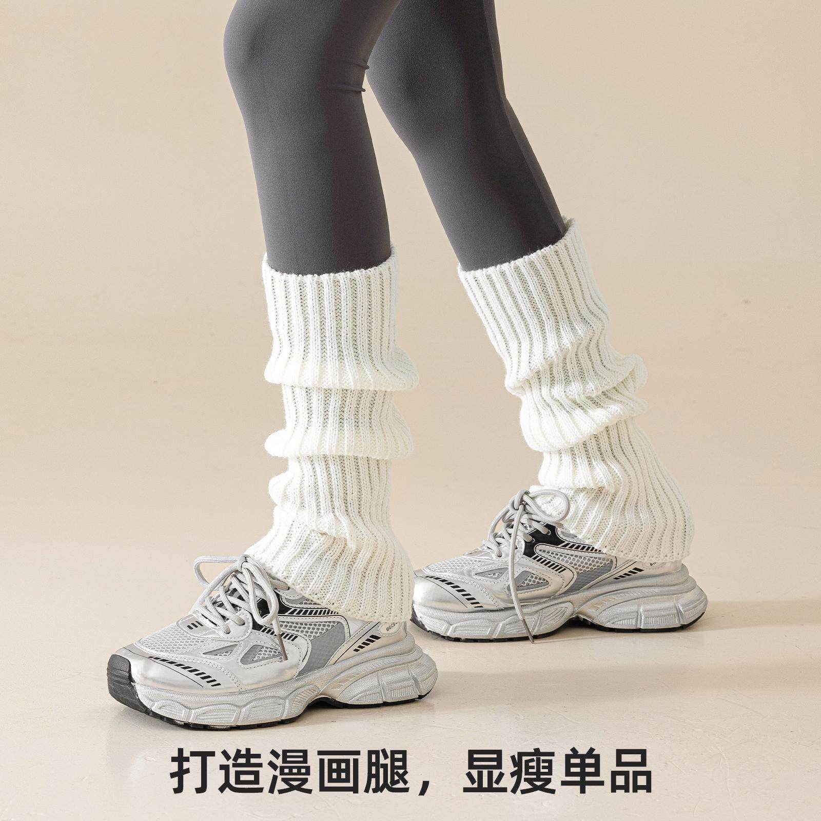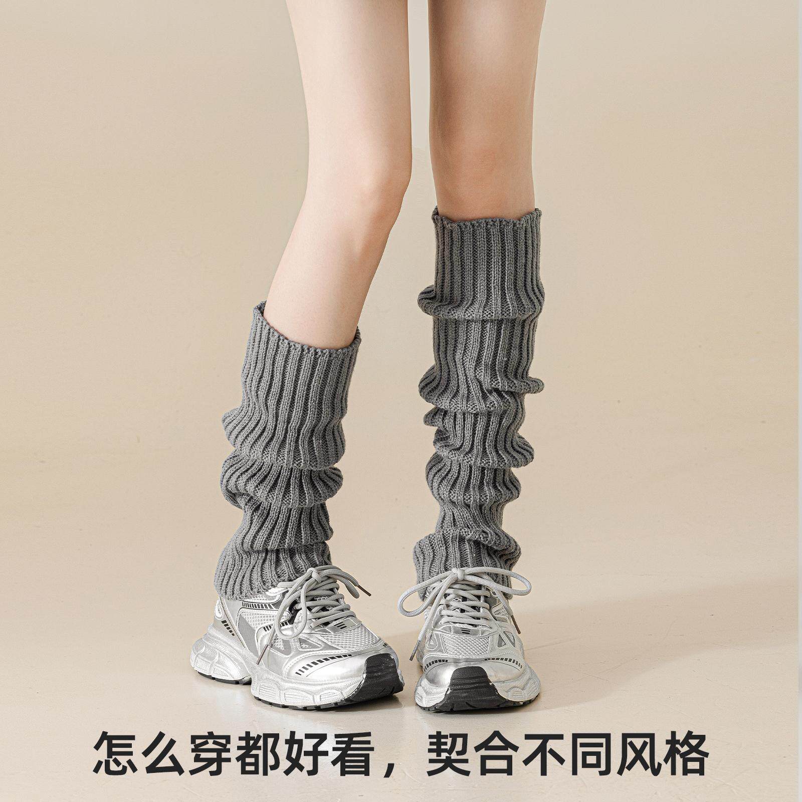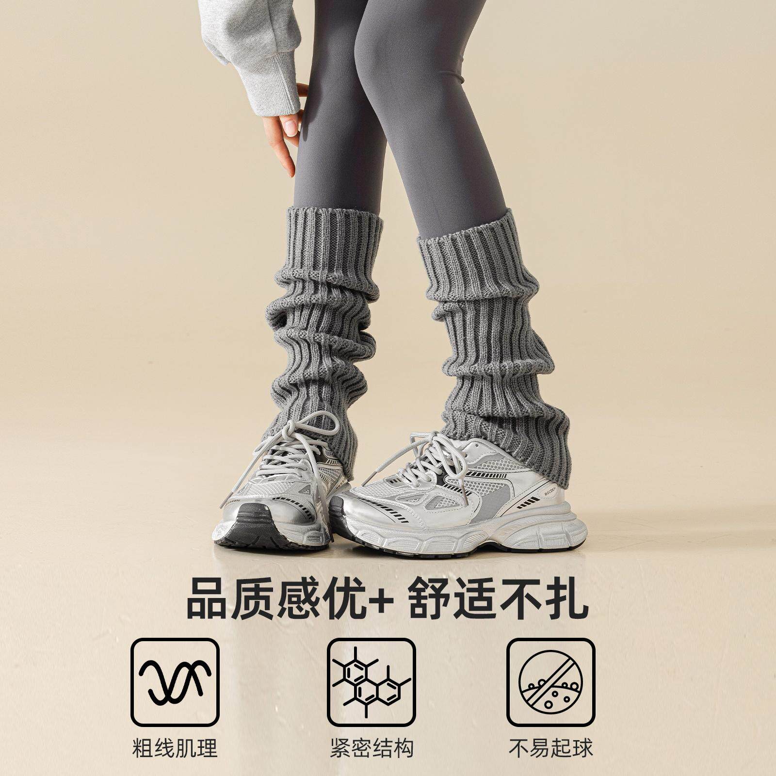 配鲨鱼裤的袜子袜套灰色堆堆袜秋冬显瘦腿套辣妹保暖中筒小腿长袜