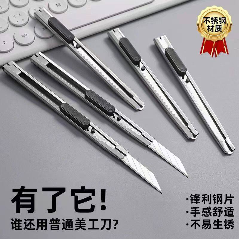 不锈钢美工刀批发加厚小号雕刻拆快递裁纸专用小刀不易刀片必备好物切割器拆封口打包透明胶带开箱神器封箱