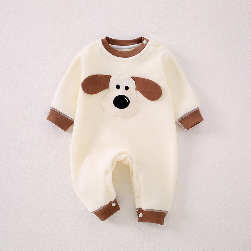 婴儿衣服秋冬加绒男女宝宝一体绒保暖奥粒绒无骨连体衣中厚婴幼儿