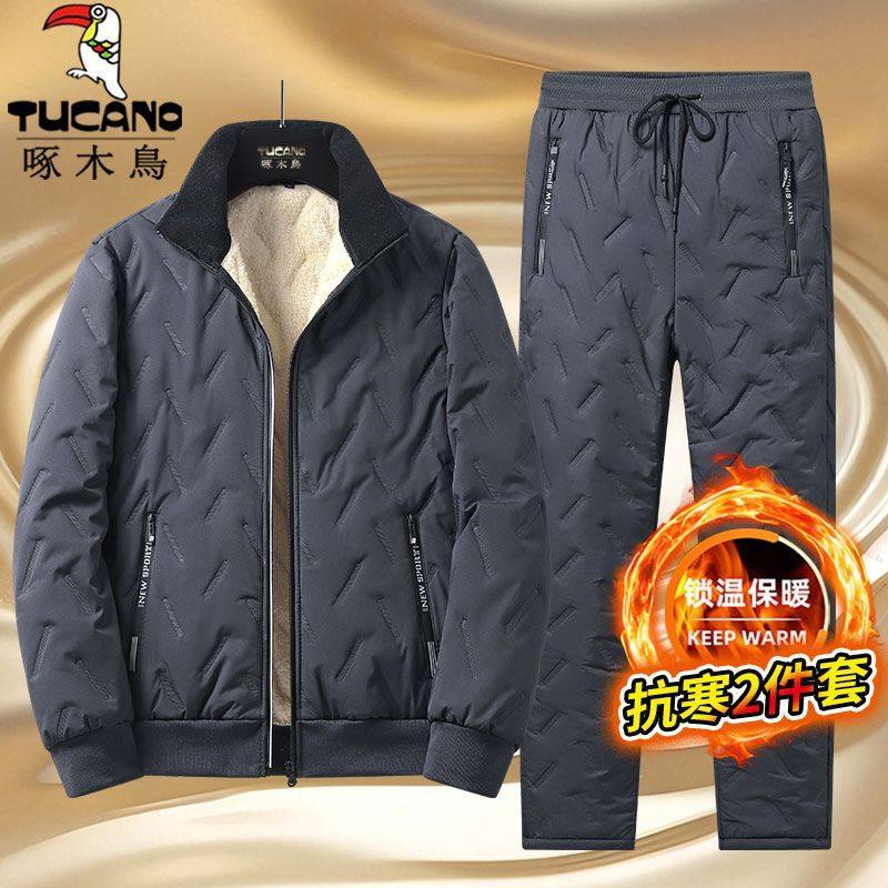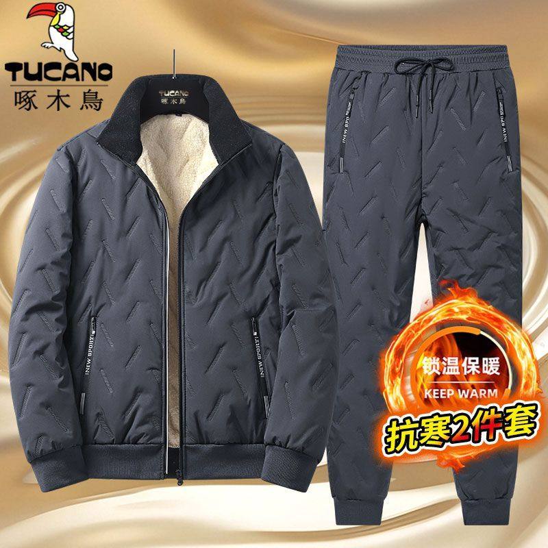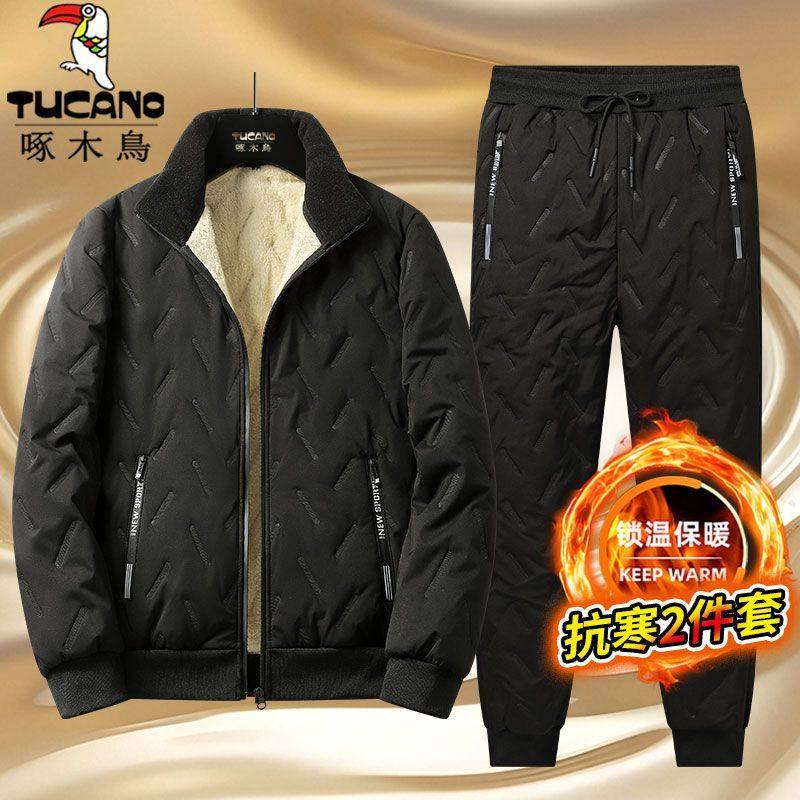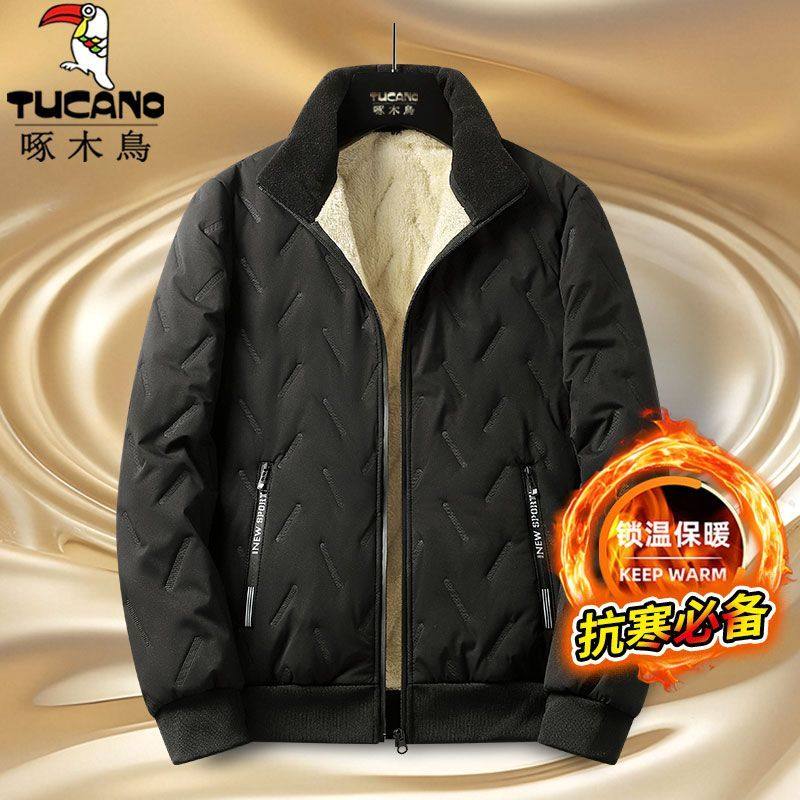 啄木鸟男士秋冬季加绒加厚羊羔绒外套棉服保暖宽松大码立领棉袄