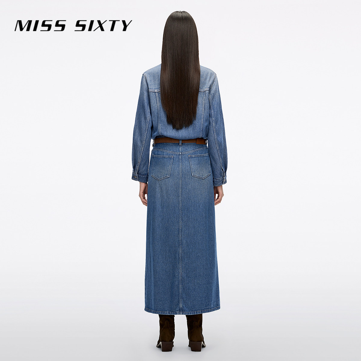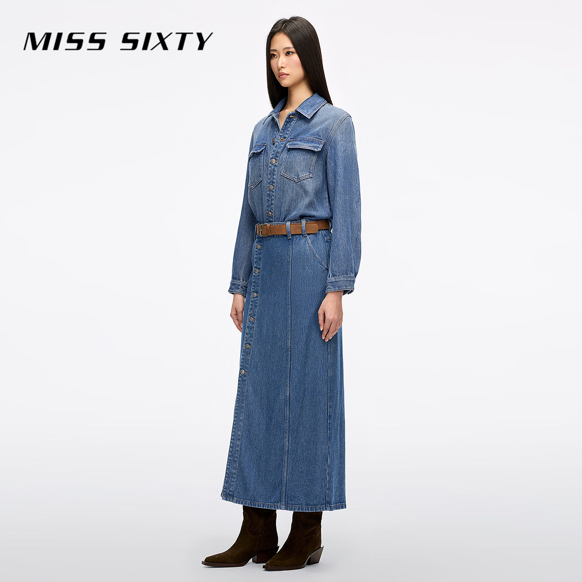 Miss Sixty2026春季新款莱赛尔牛仔连衣裙女配腰带复古工装长裙