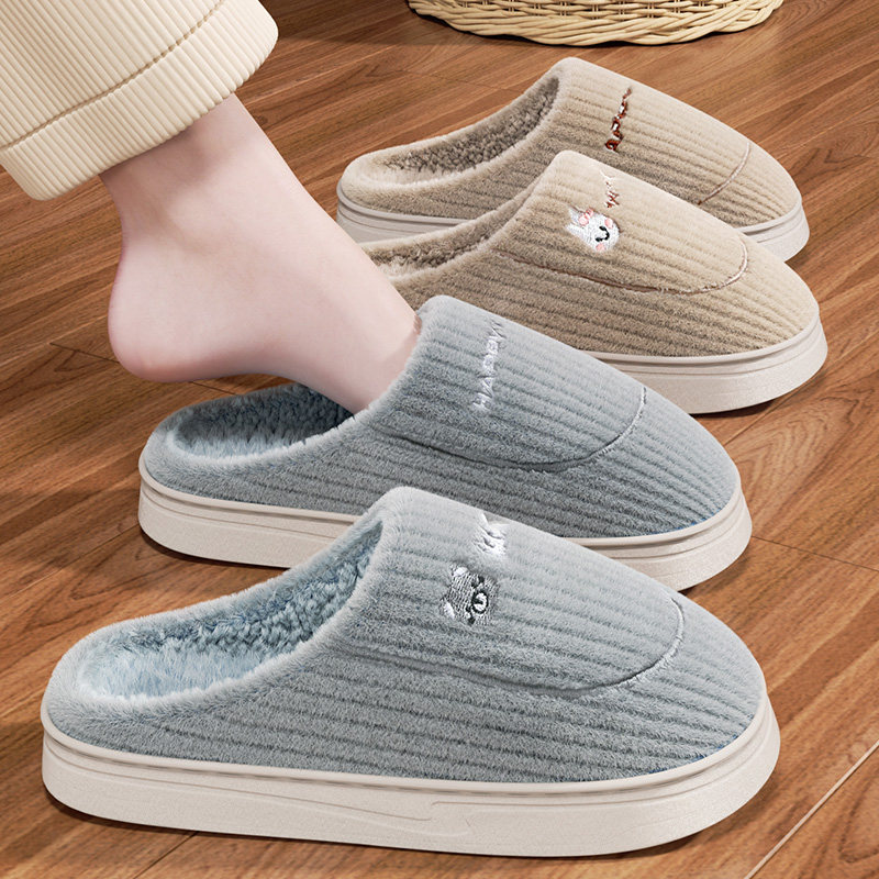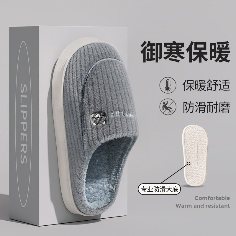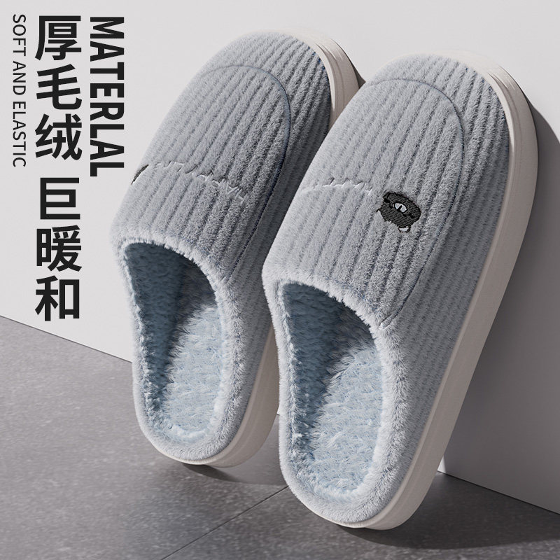 朴西棉拖鞋女士秋冬季厚底简约保暖室内居家用软底防滑情侣棉拖男