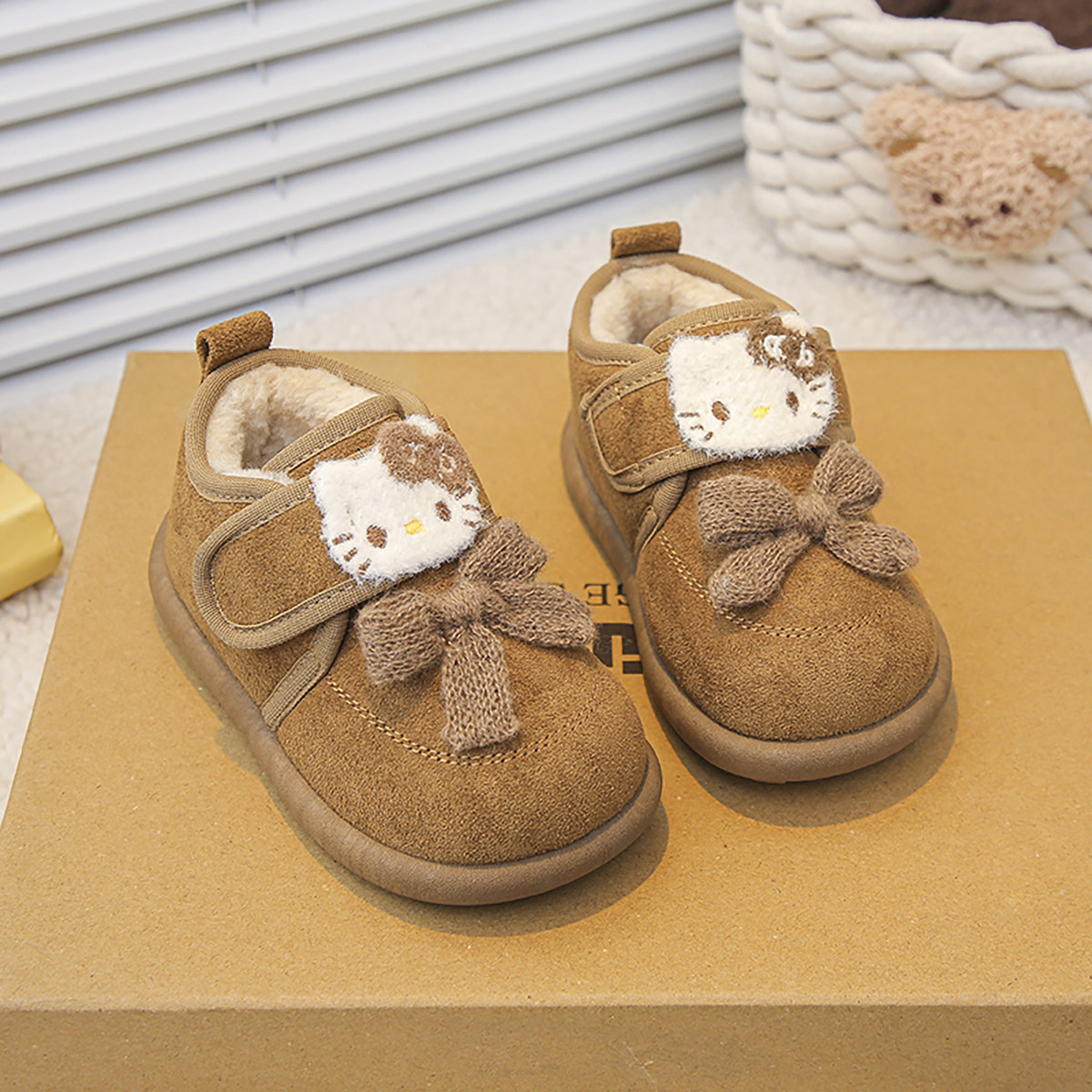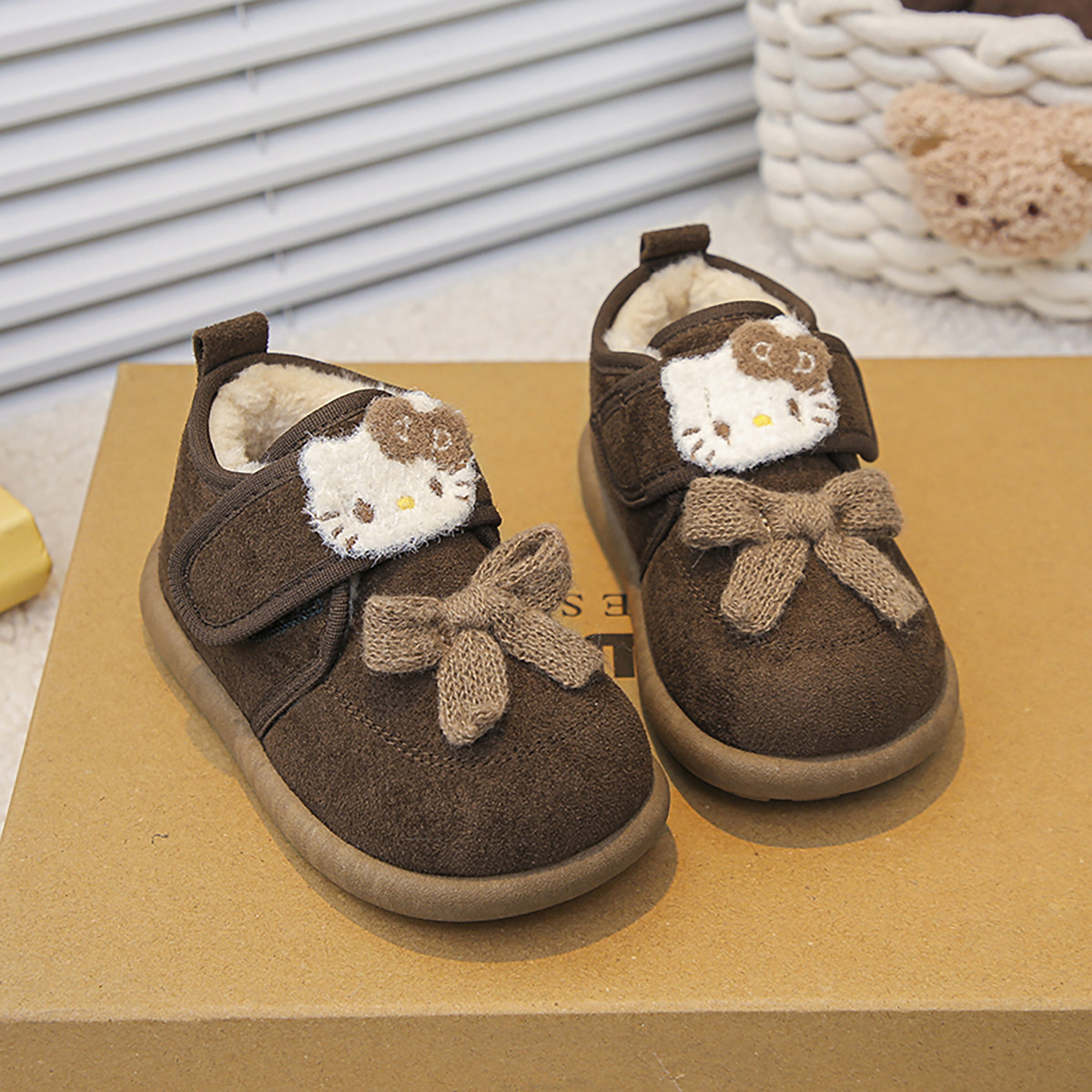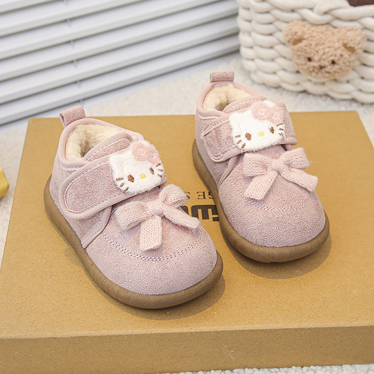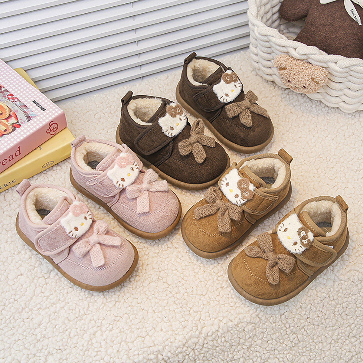 婧麒宝宝鞋子2025新款冬季可爱卡通毛绒勃肯鞋女小童加绒保暖棉靴