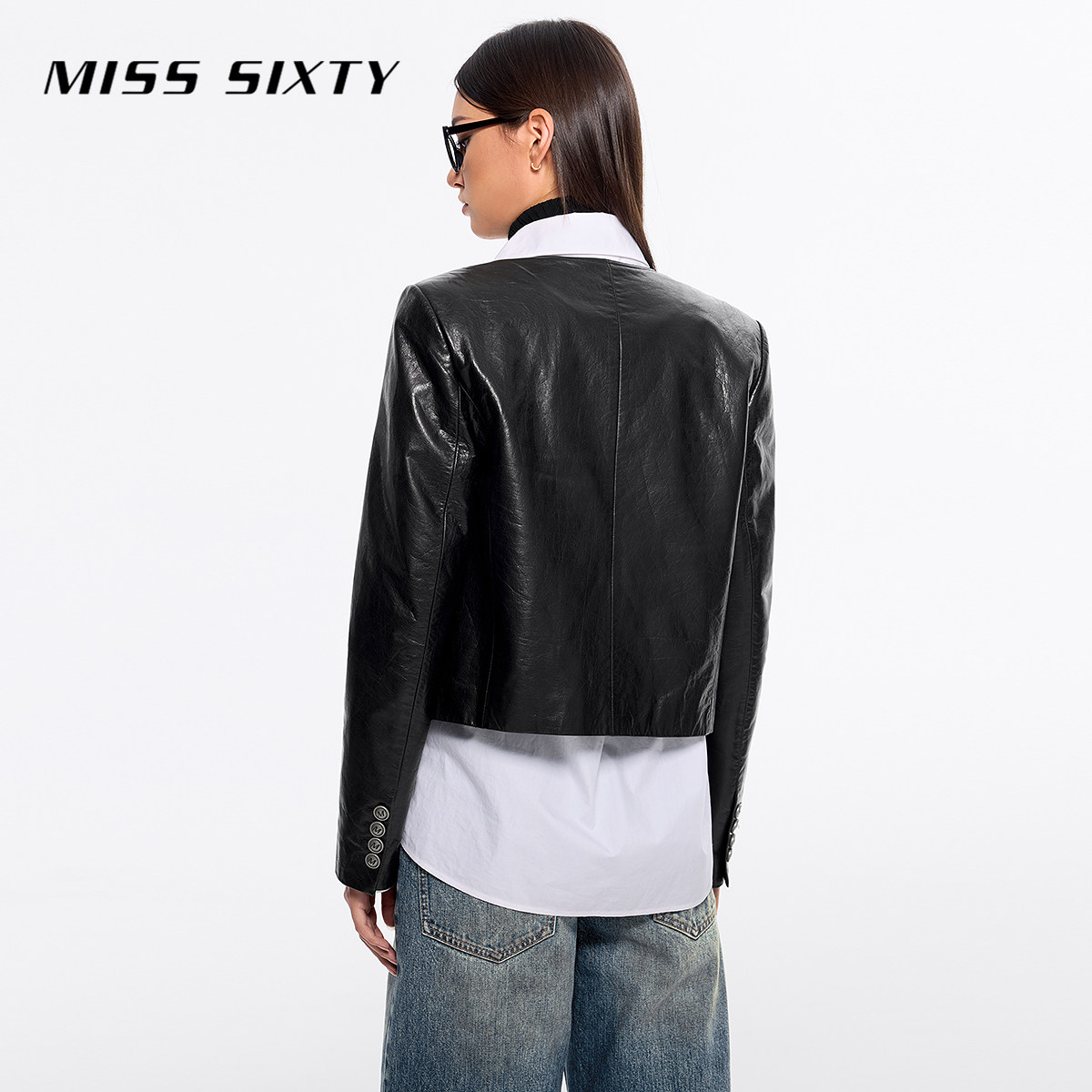 Miss Sixty皮衣真皮外套女复古美式机车圆领单排扣牛皮革高级夹克