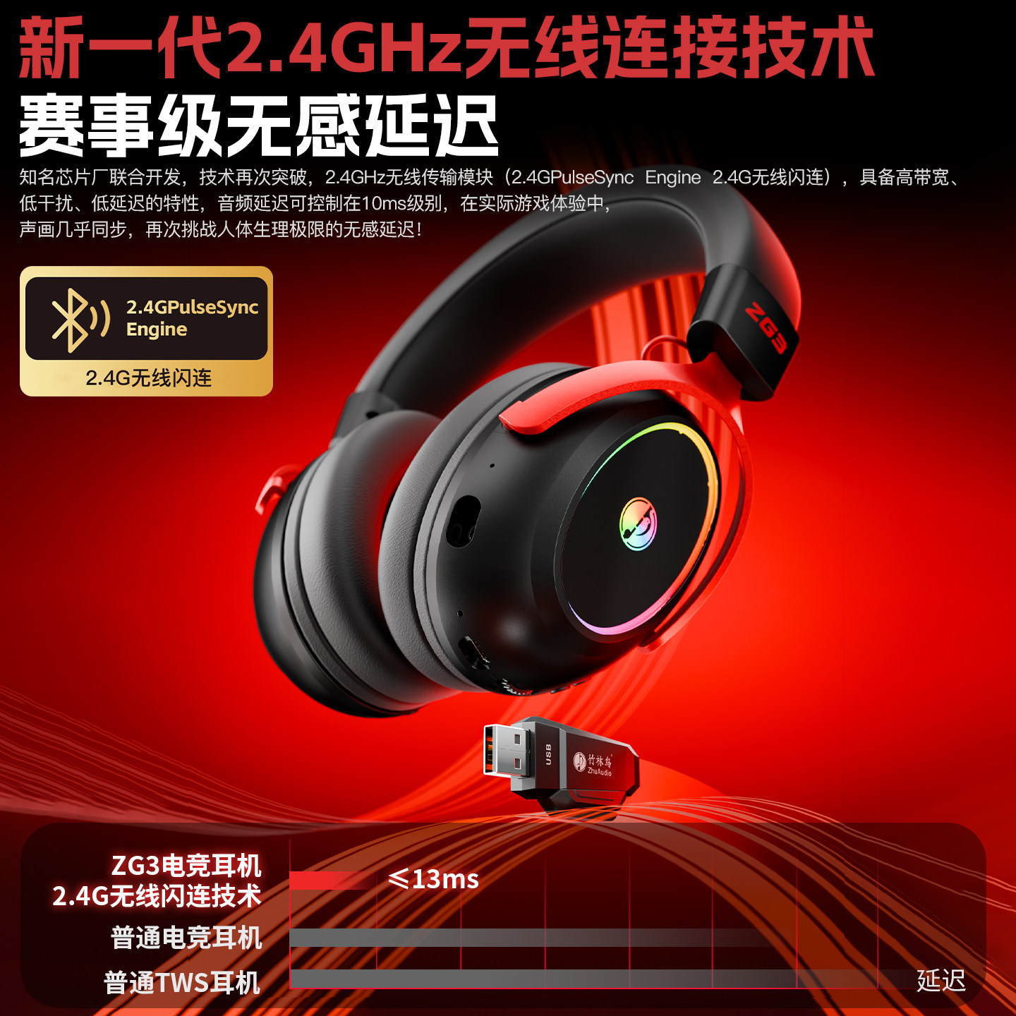竹林鸟朱雀ZG3电竞游戏头戴式耳机四模蓝牙电脑带麦无线听声辨位