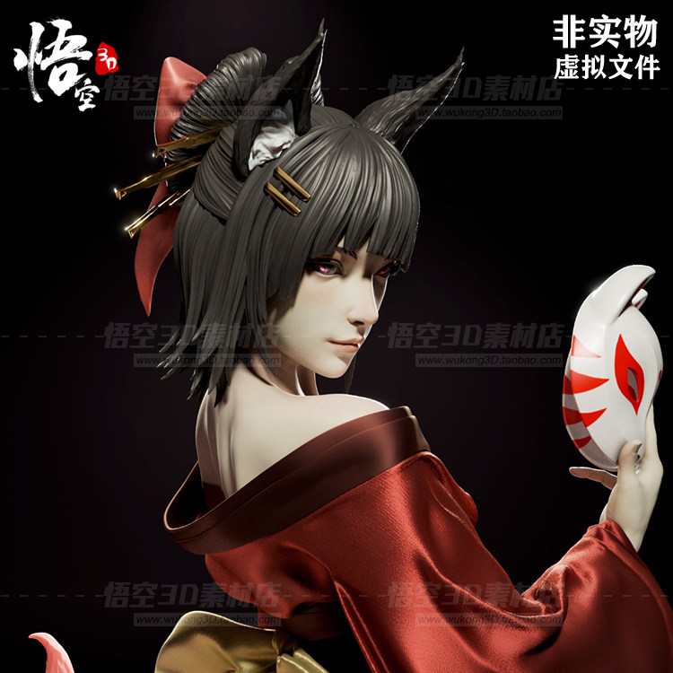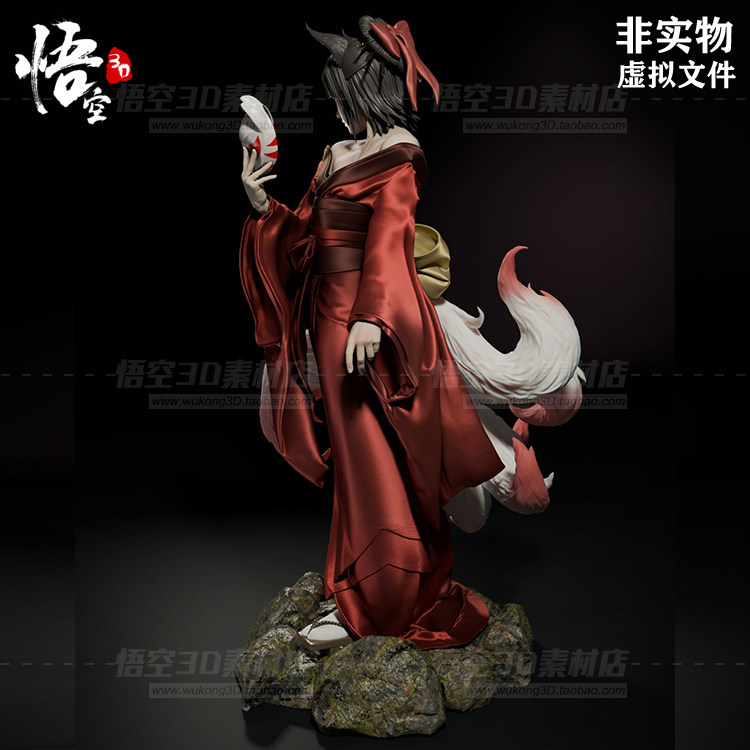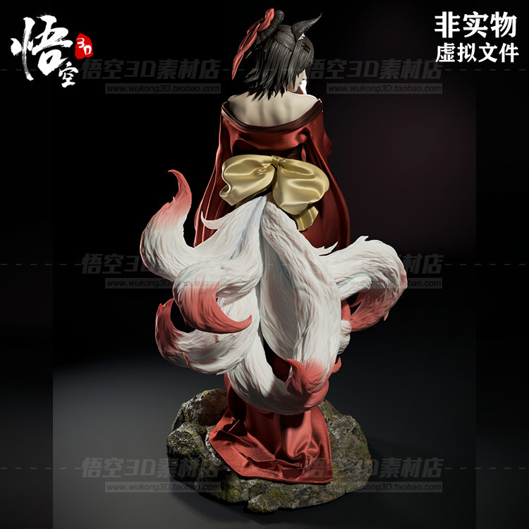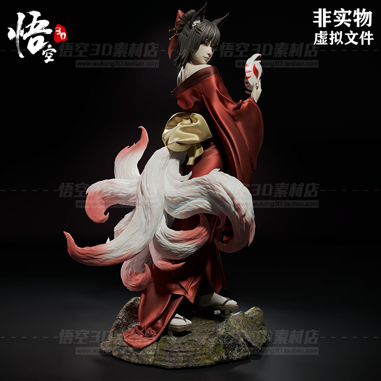 天照大神九尾狐手办雕像3D打印模型图纸数据文件 树脂模玩定制