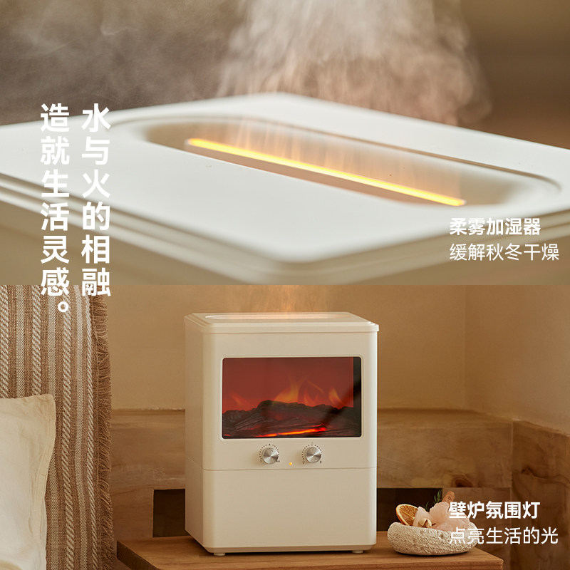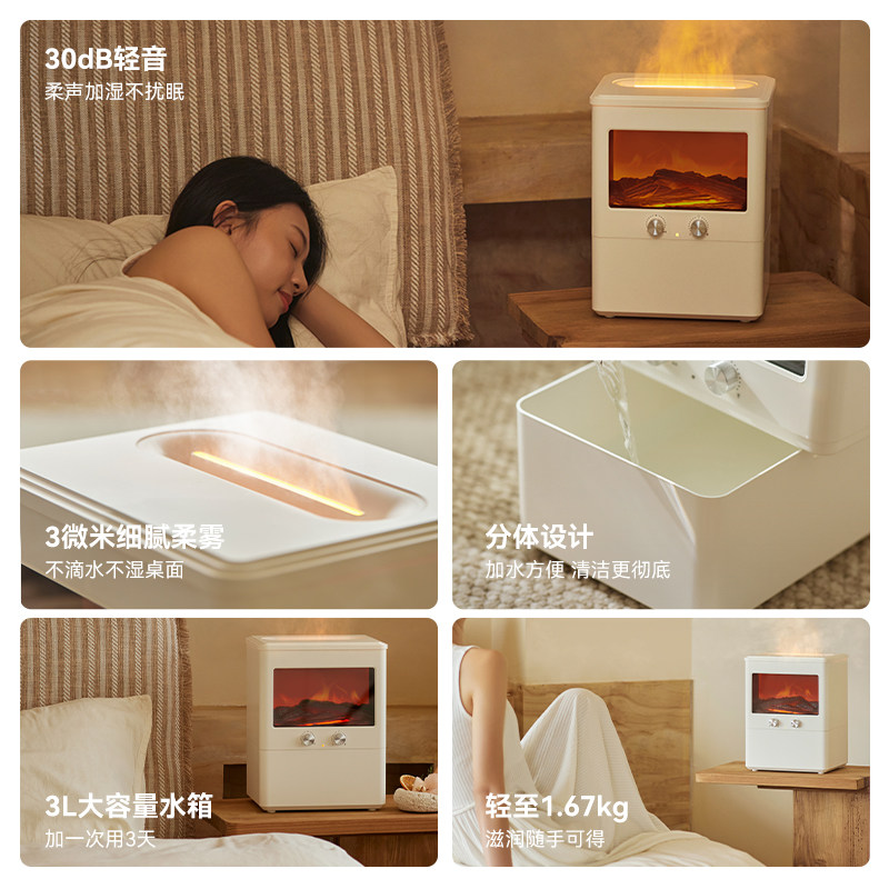 olayks立时加湿器家用静音卧室小型桌面孕妇婴儿空气客厅喷雾火焰