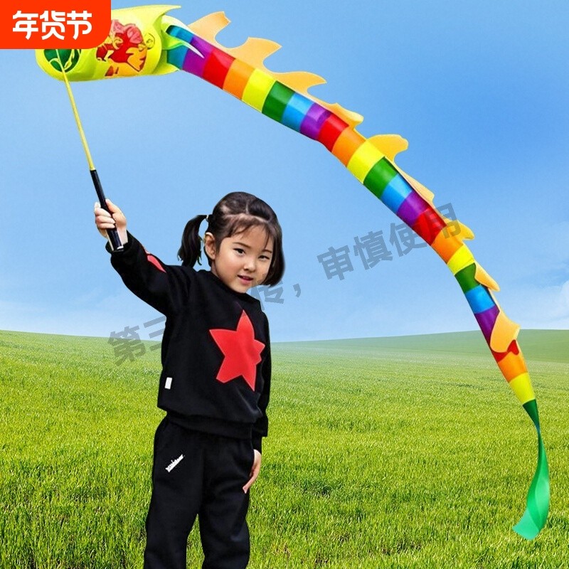 舞龙彩带健身甩甩龙幼儿园道具儿童广场彩带舞手耍龙空竹龙小学生