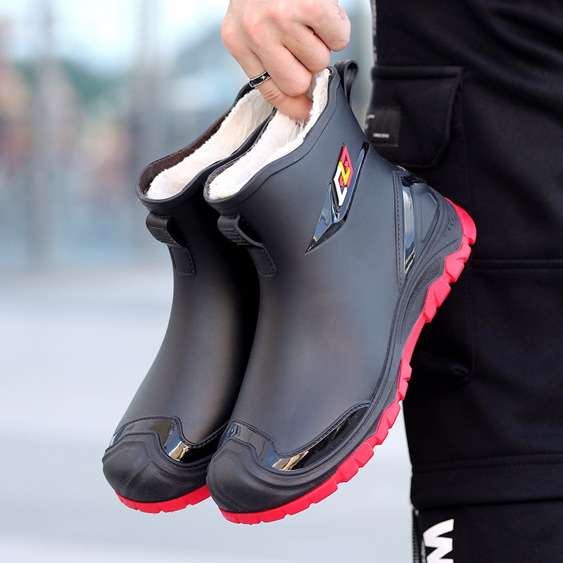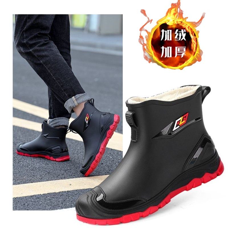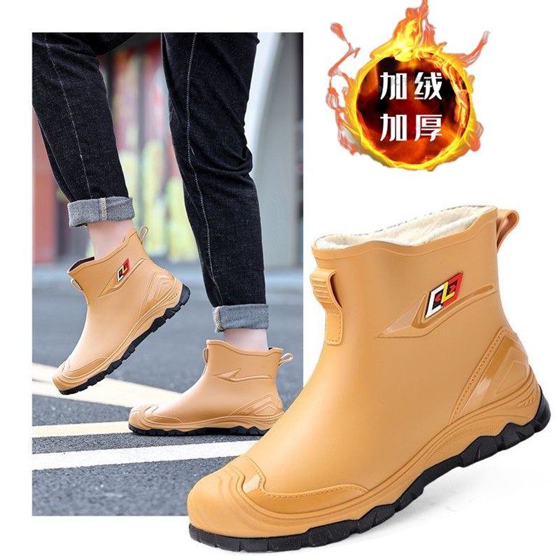 户外雨鞋外卖雨靴男士防水防滑厨房水鞋短筒耐磨加绒保暖胶鞋轻便