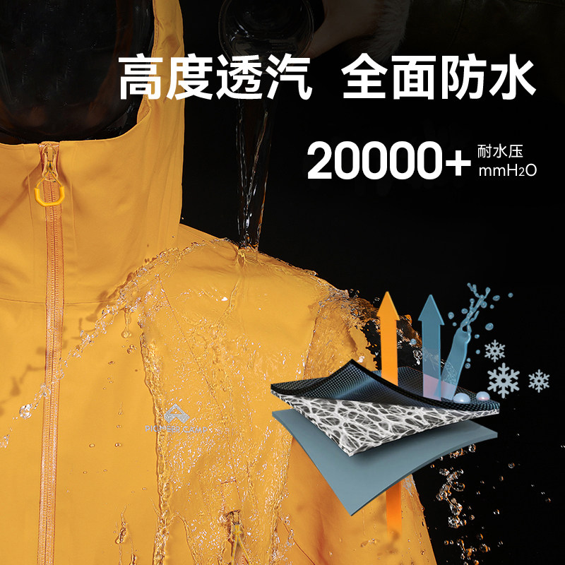 骆驼户外雨神冲锋衣男三合一羽绒服冬季防水外套女三防旅游滑雪服