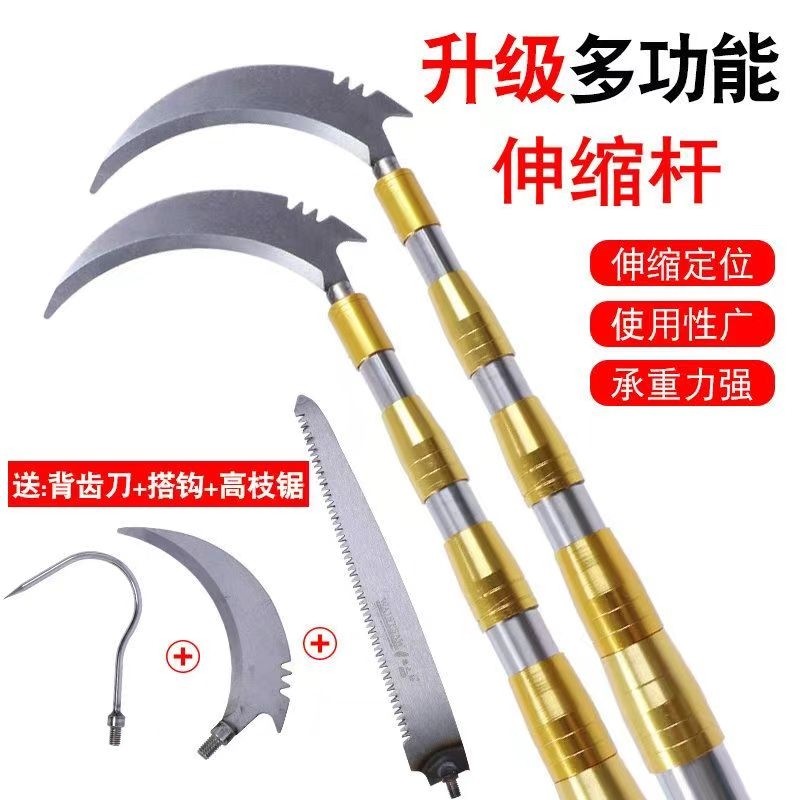 加固不锈钢伸缩抄网杆高空采摘果实3米6米香椿钩子钓鱼割草镰刀杆
