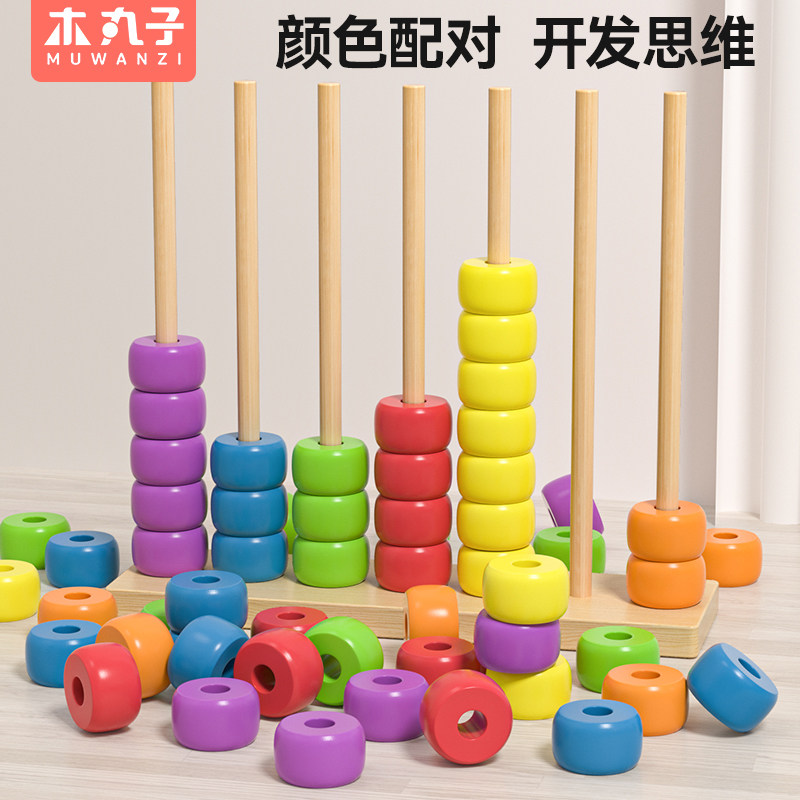 木质多彩串珠早教计算颜色对对碰趣味幼儿园宝宝训练益智玩具