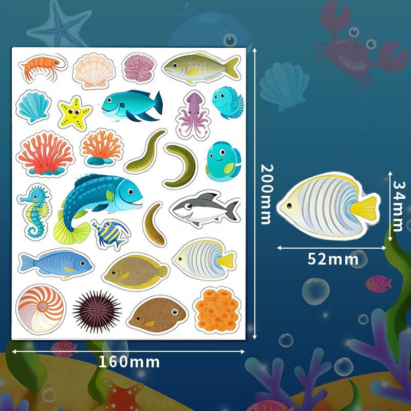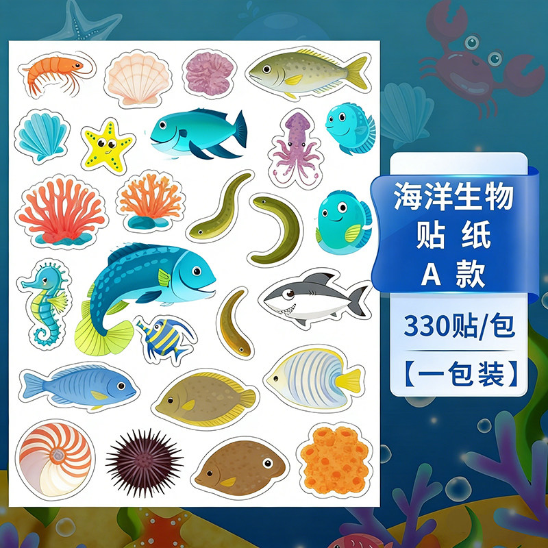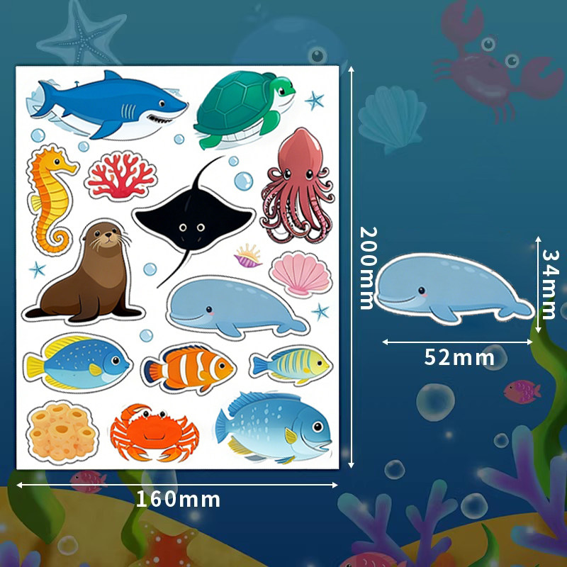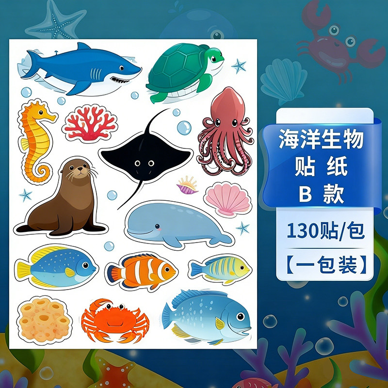 可爱海洋生物贴纸儿童奖励表扬贴卡通鲨鱼海豚螃蟹小图案防水贴画
