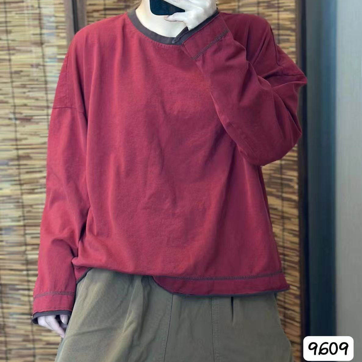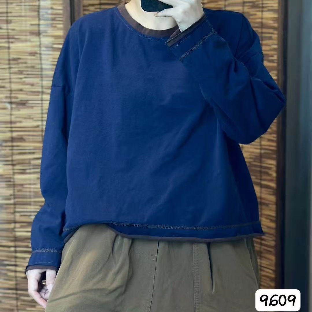 9609-秋季新款高品质纯棉长袖T恤女士休闲百搭宽松显瘦日常款上衣
