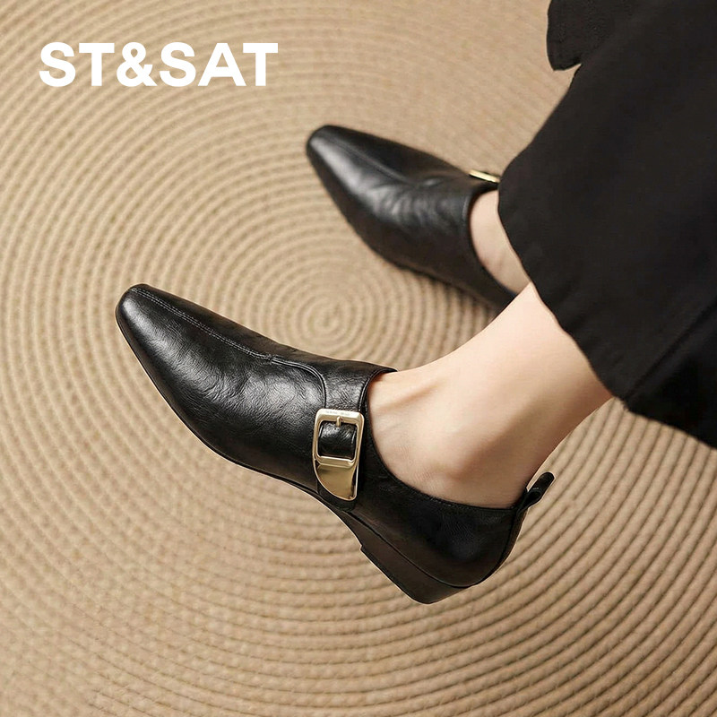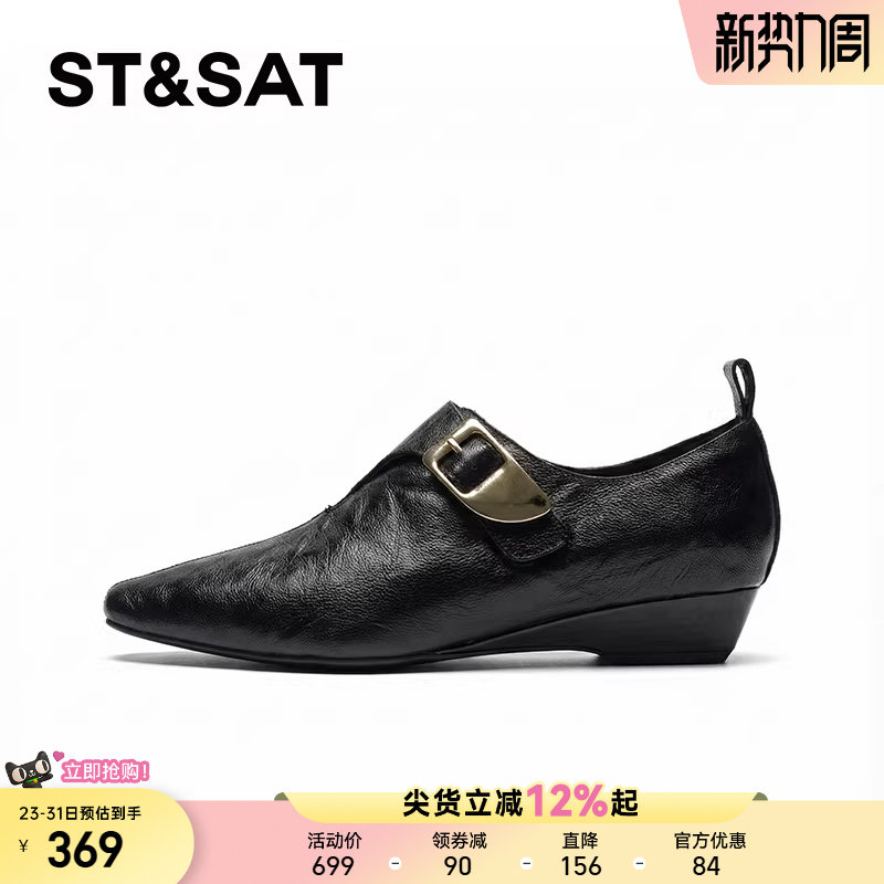 【羊皮】星期六尖头深口单鞋女款2026春季新款黑色乐福鞋搭配裙子