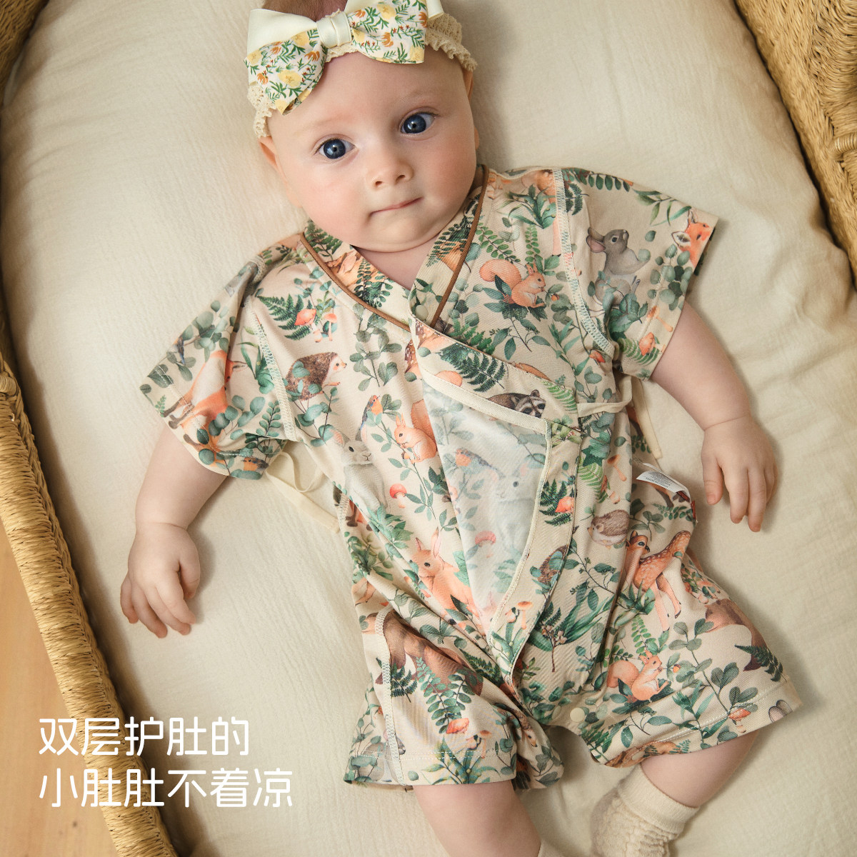 [动物之森]aqpa爱帕新生儿婴儿衣服莫代尔夏季短袖宝宝连体衣哈衣