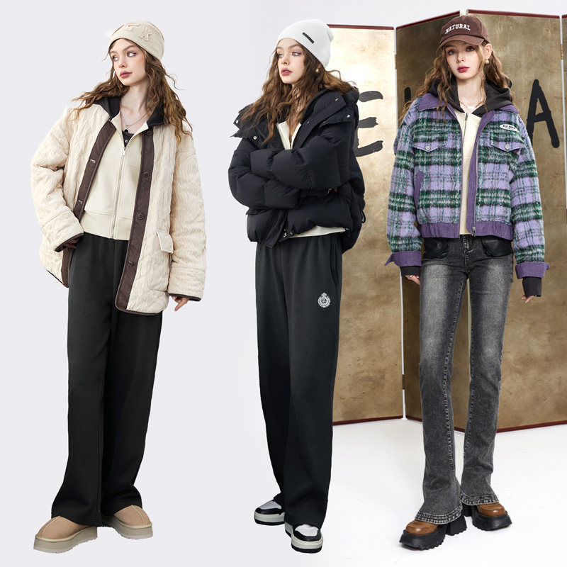 【德绒套装】安欧兔休闲运动套装女立领上衣阔腿裤跑步健身服外套