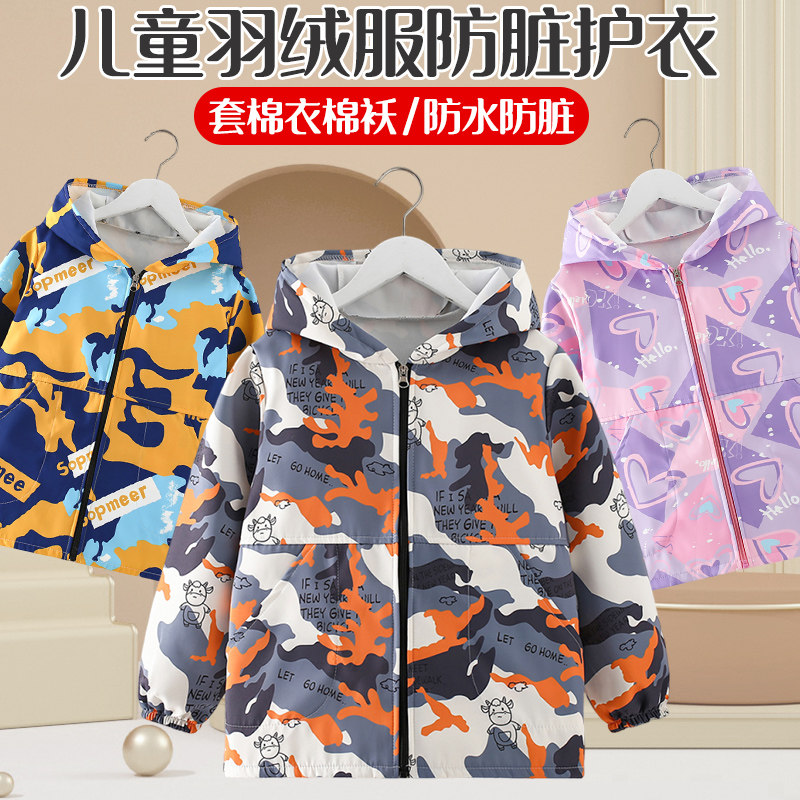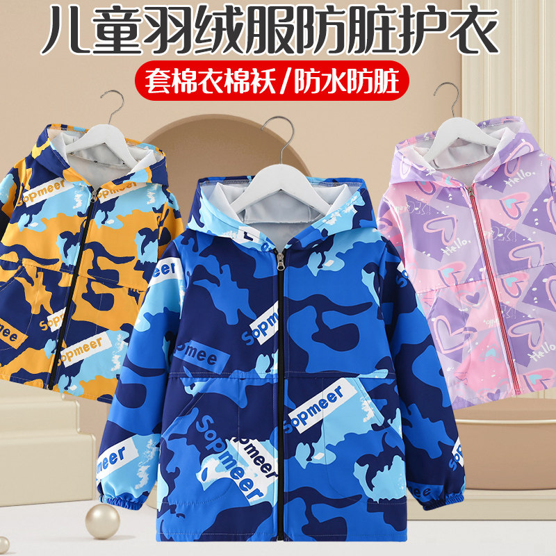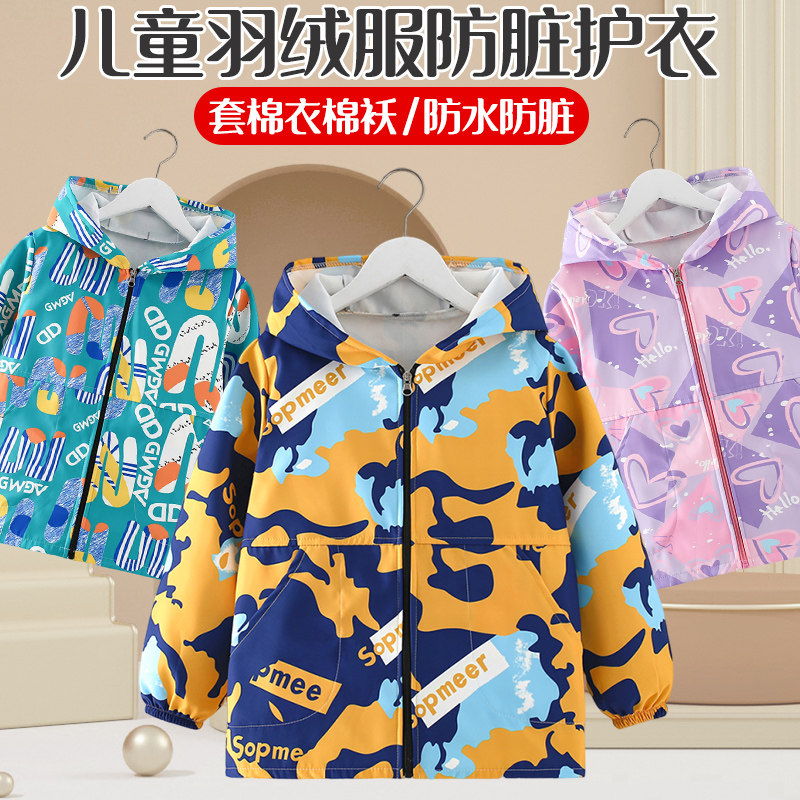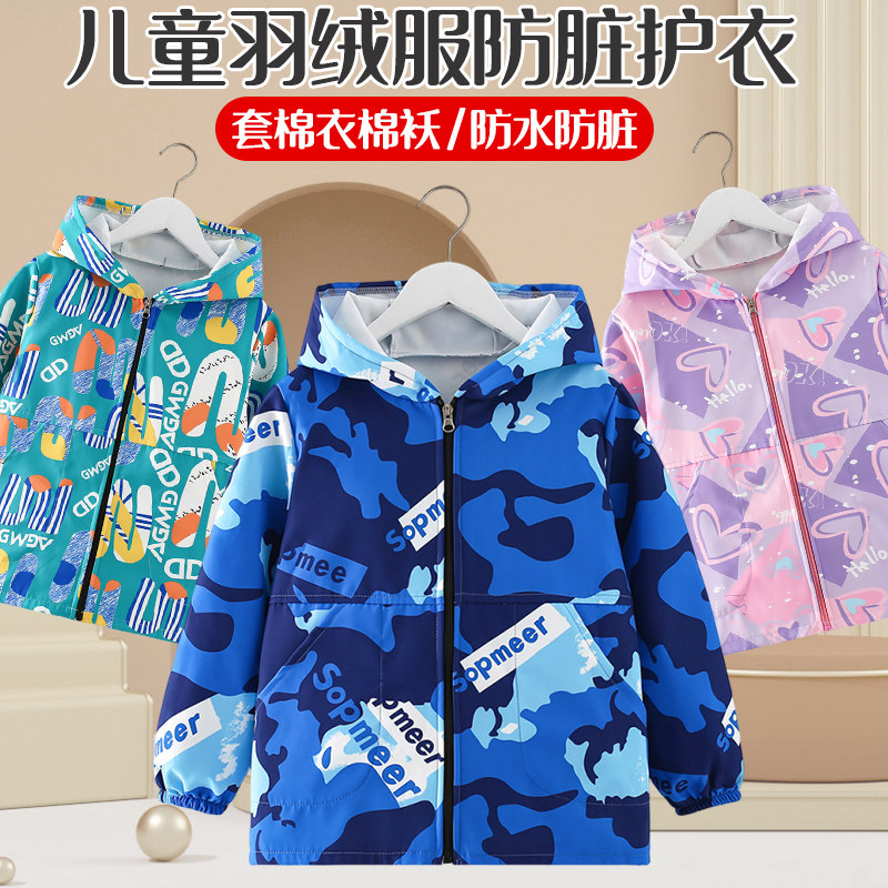 儿童罩衣中大童防水防脏宝宝画画男女吃饭秋冬外穿套护衣羽绒服