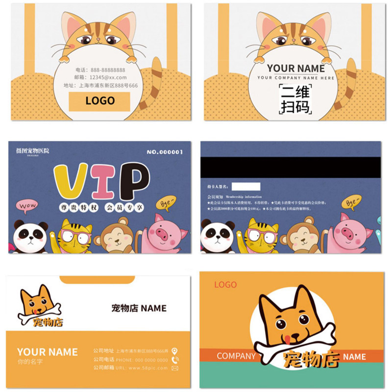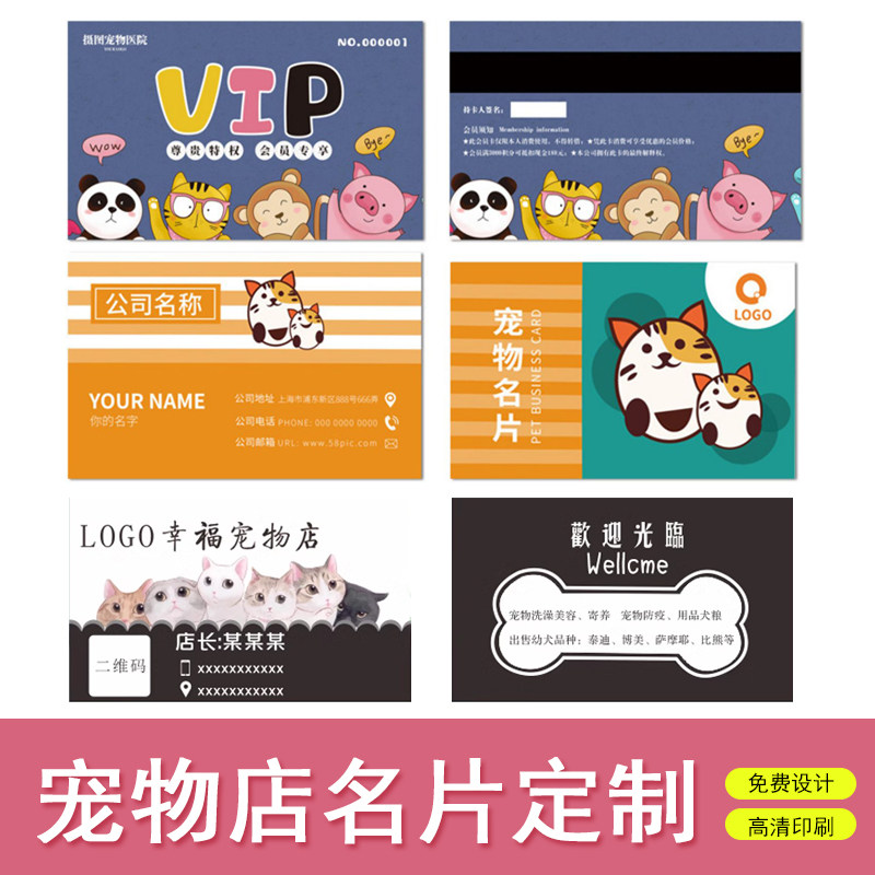 宠物狗洗澡美容卡宠物店卡片定制猫舍卡通个性名片创意外卖服务卡设计积分会员卡打印刷宠物医院宣传卡片制作