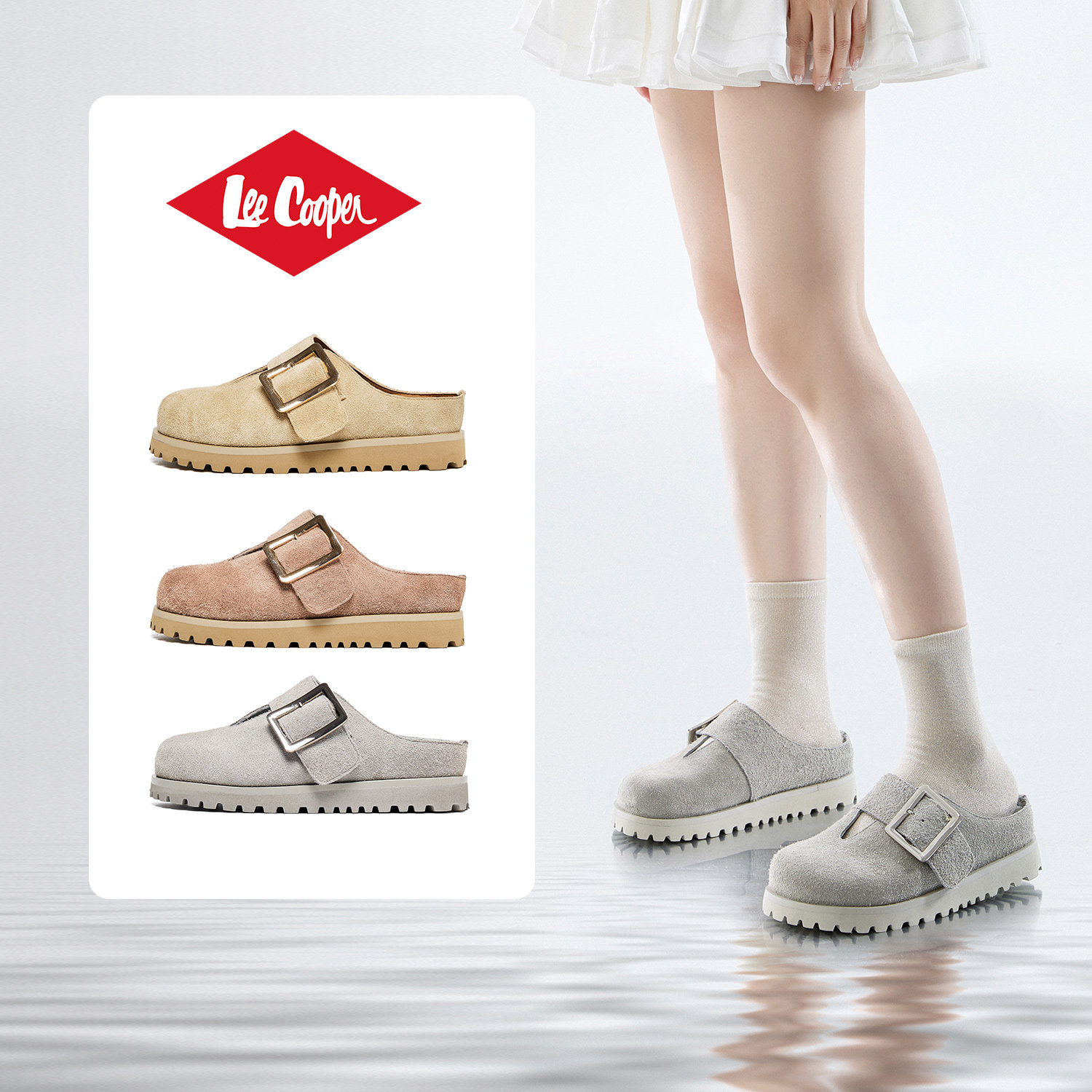 Lee Cooper勃肯鞋女2025新款秋季水钻包头拖鞋内增高一脚蹬休闲鞋
