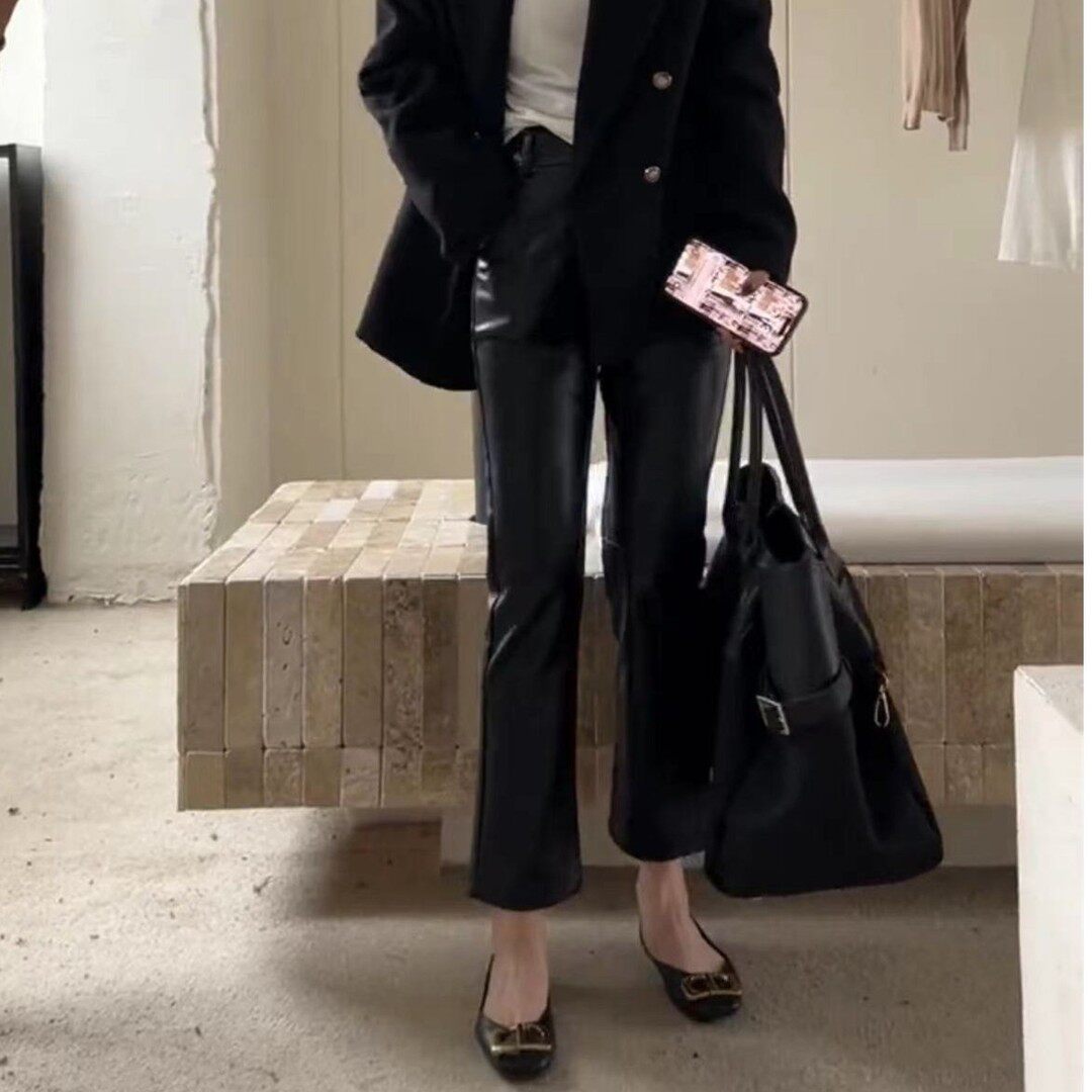 高贵上档次女裤秋冬皮裤休闲高腰裤子修容笔磨毛烟管裤显瘦九分裤