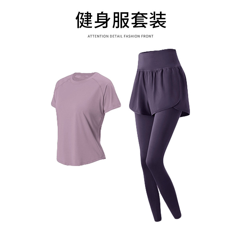 健身服套装女新款专业跑步速干衣夏季宽松短袖瑜伽服羽毛球运动服