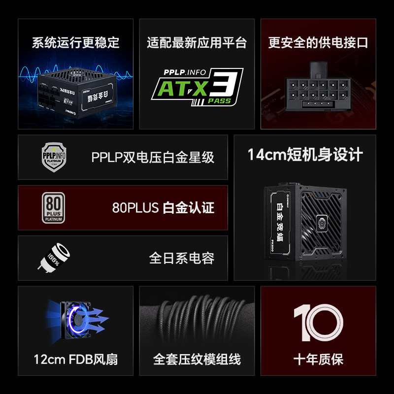 安耐美白金竞蝠PK850W电源电脑台式机主机电源白金全模组atx850w