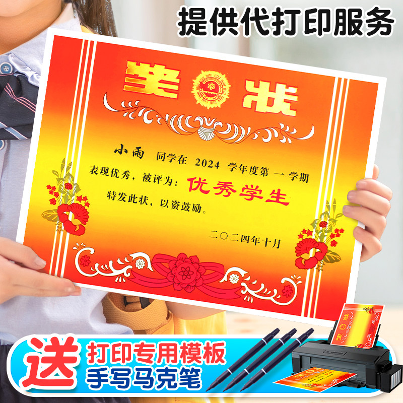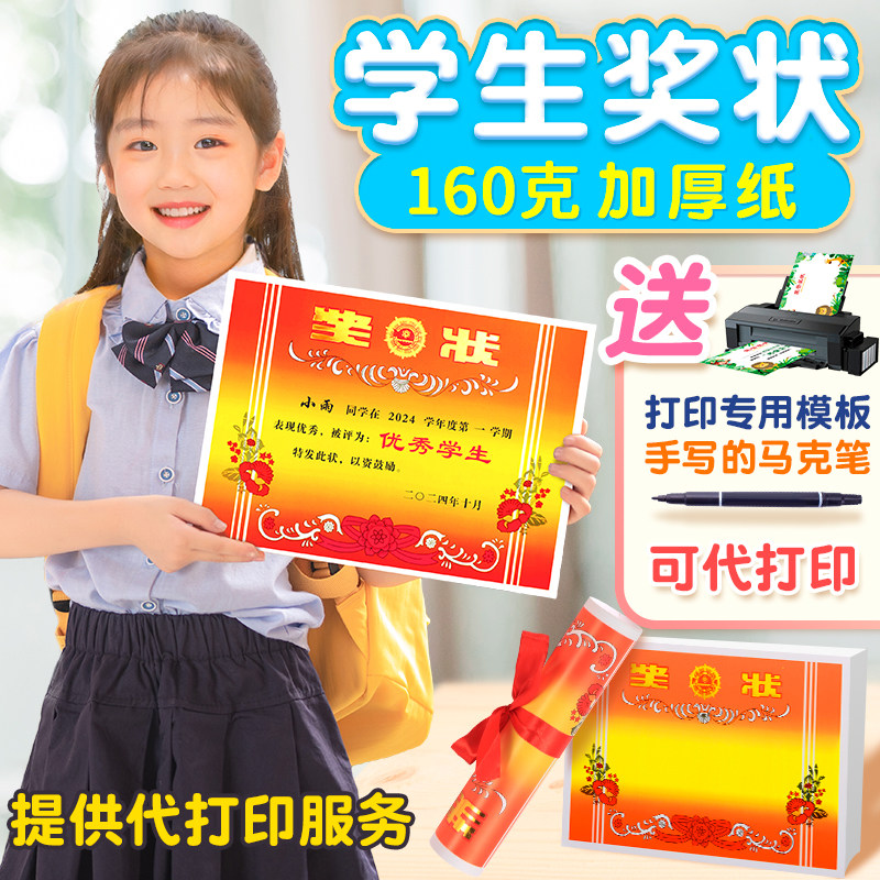 奖状A4小学生奖状纸2025模板8K可打印荣誉证书三好学生铜版纸双胶纸幼儿园创意表扬信优秀进步考试烫金阅读
