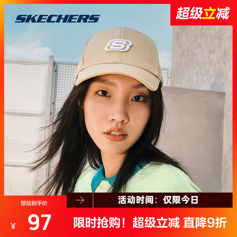 斯凯奇男女同款防晒帽遮阳帽运动刺绣鸭舌帽休闲情侣棒球帽