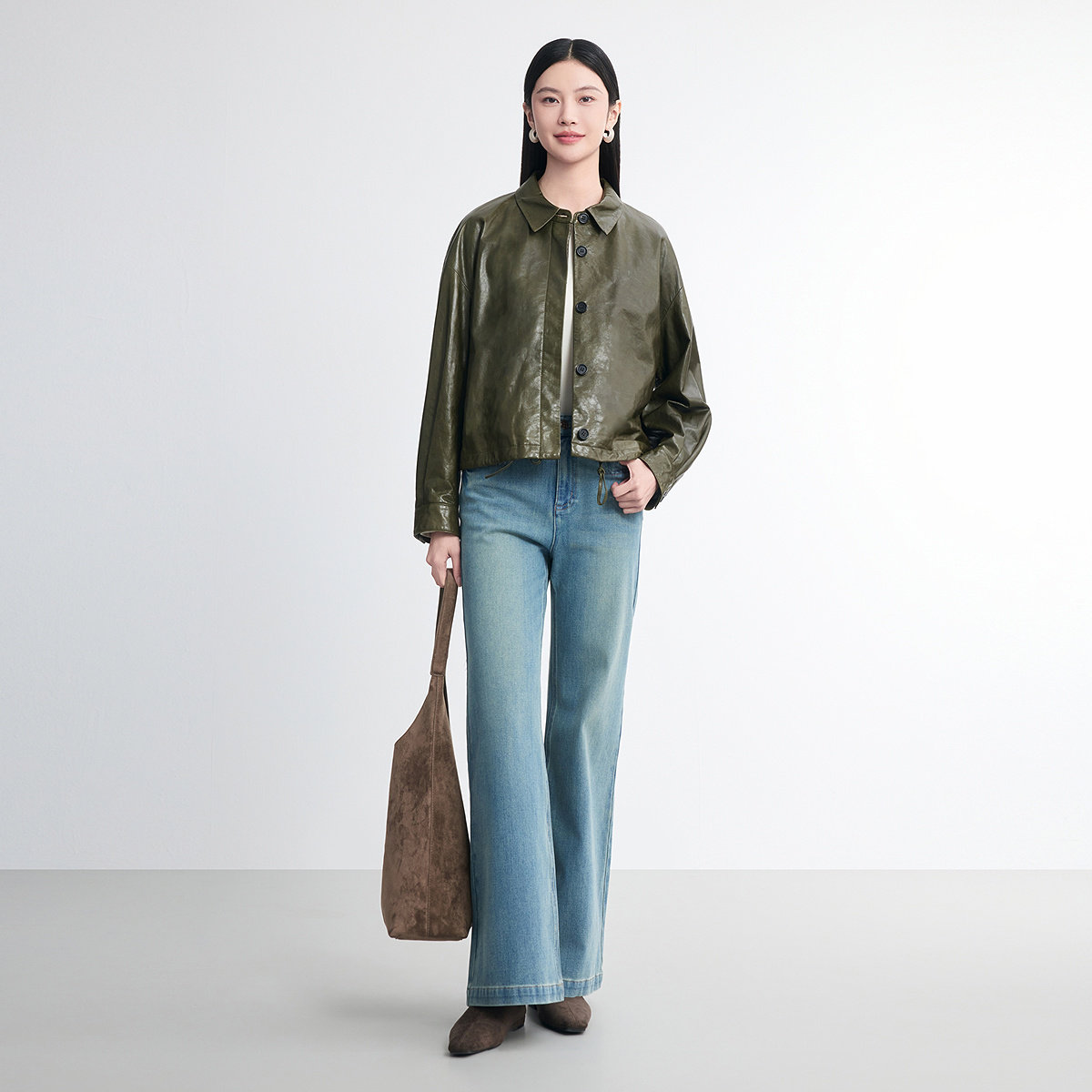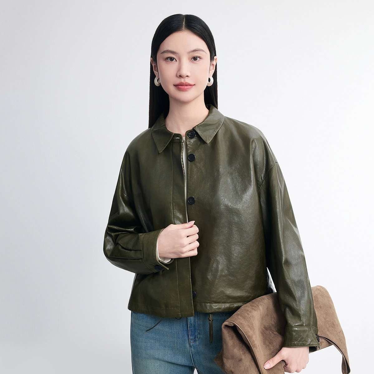 FINITY菲妮迪真皮皮衣2026春新款新款简约羊皮肌理感轻奢外套女装