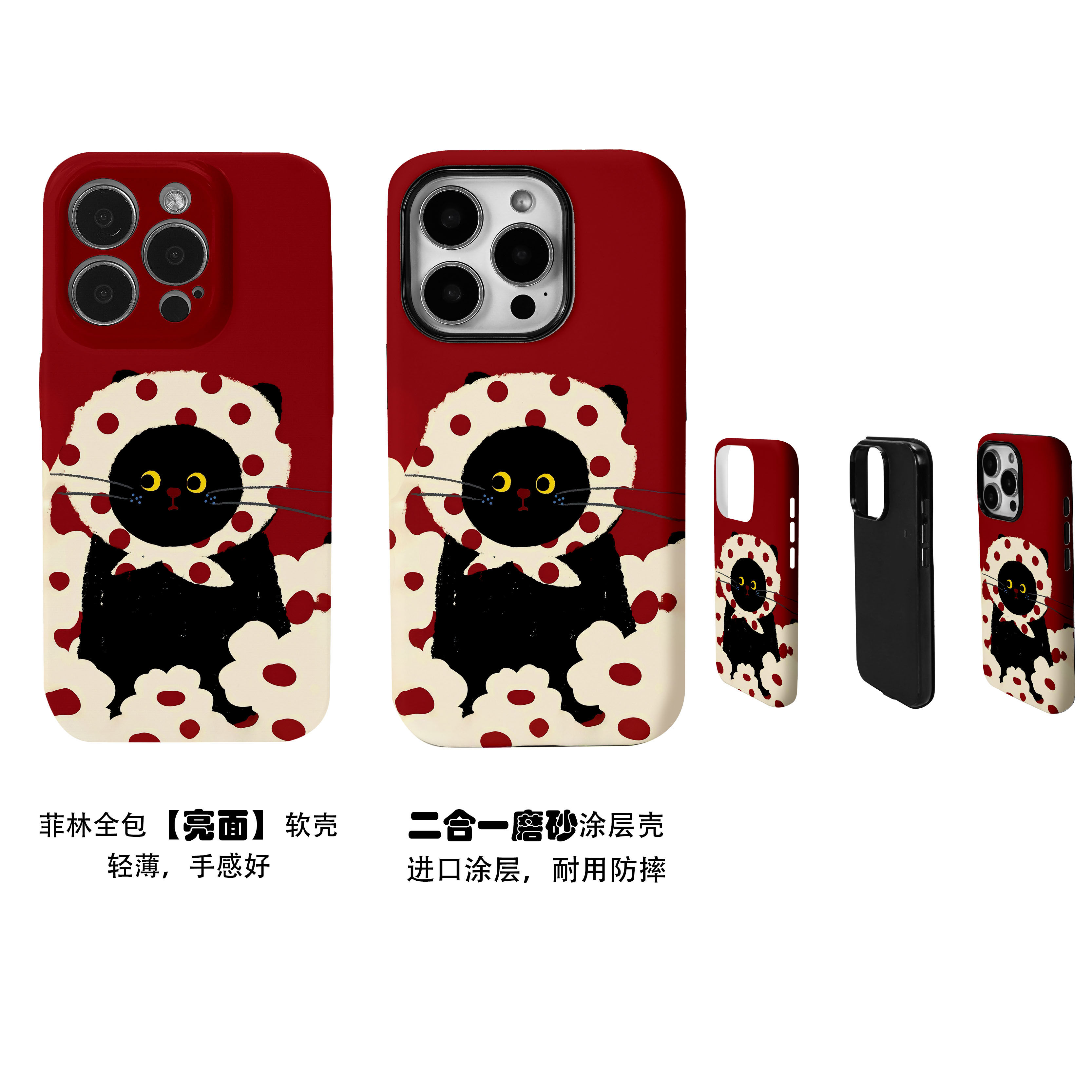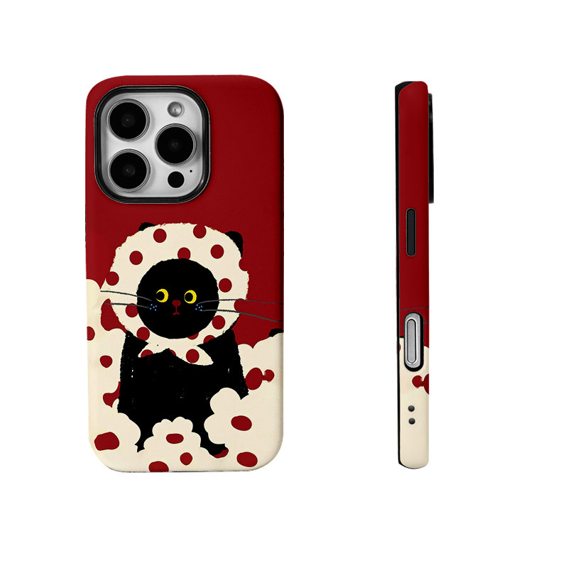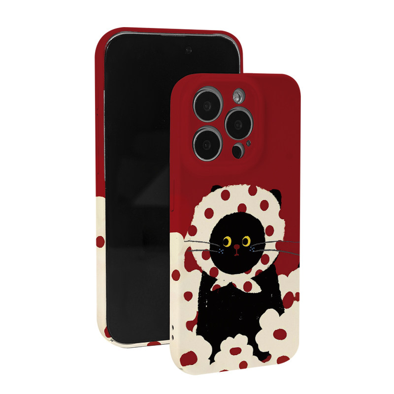 可爱花头巾猫咪简笔画菲林二合一手机壳适用苹果17nova14华为p70mate60小米15opporen14ovivo荣耀300iPhone16