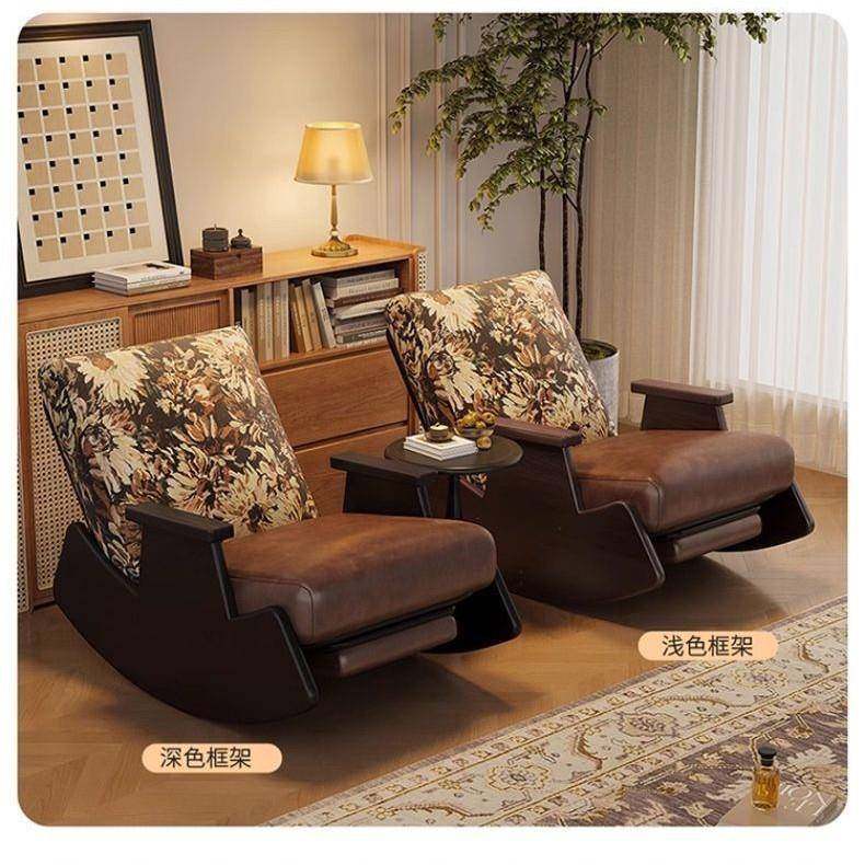 单人沙发实木沙发椅懒人休闲摇摇家用椅子躺椅阳台休闲椅客厅复古
