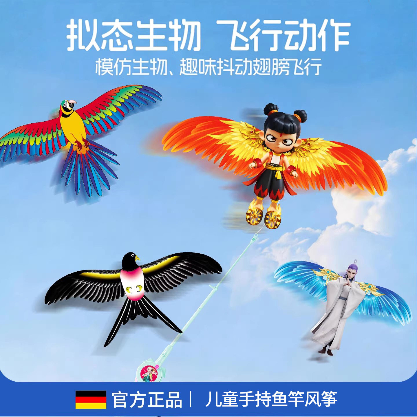儿童手持小风筝哪吒口袋微风易飞2026新款鱼竿动态专用小鸟小女孩