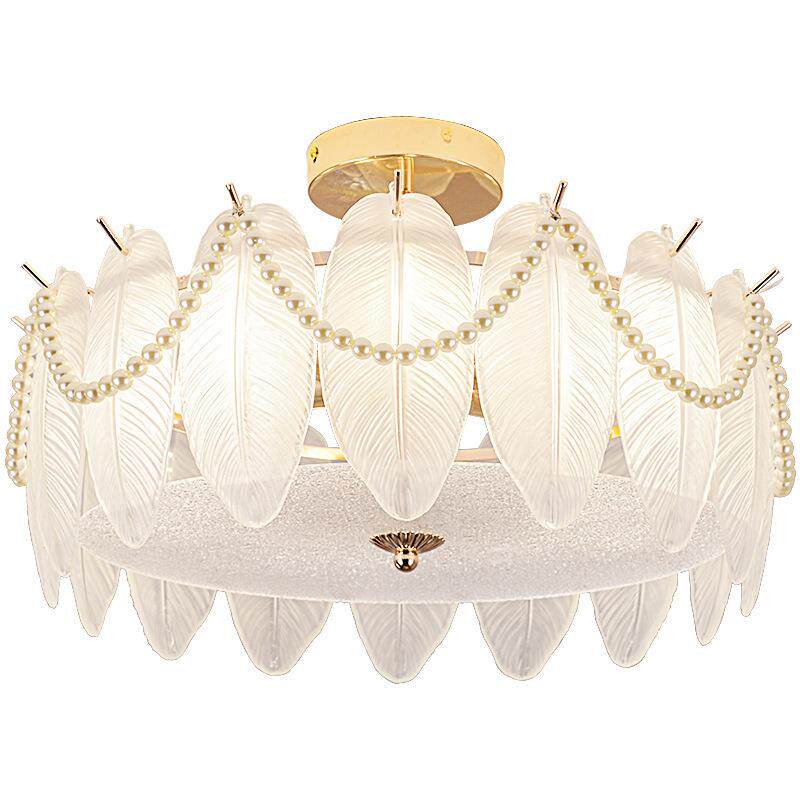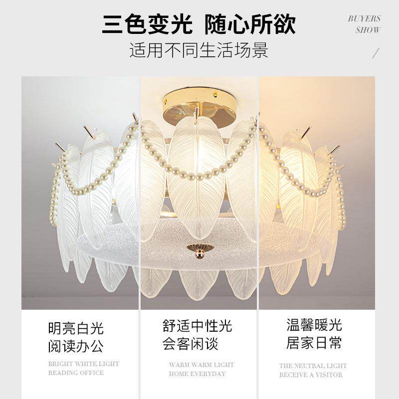 轻奢吸顶灯卧室灯奶油风珍珠羽毛餐厅灯家用公主房灯LED护眼灯饰