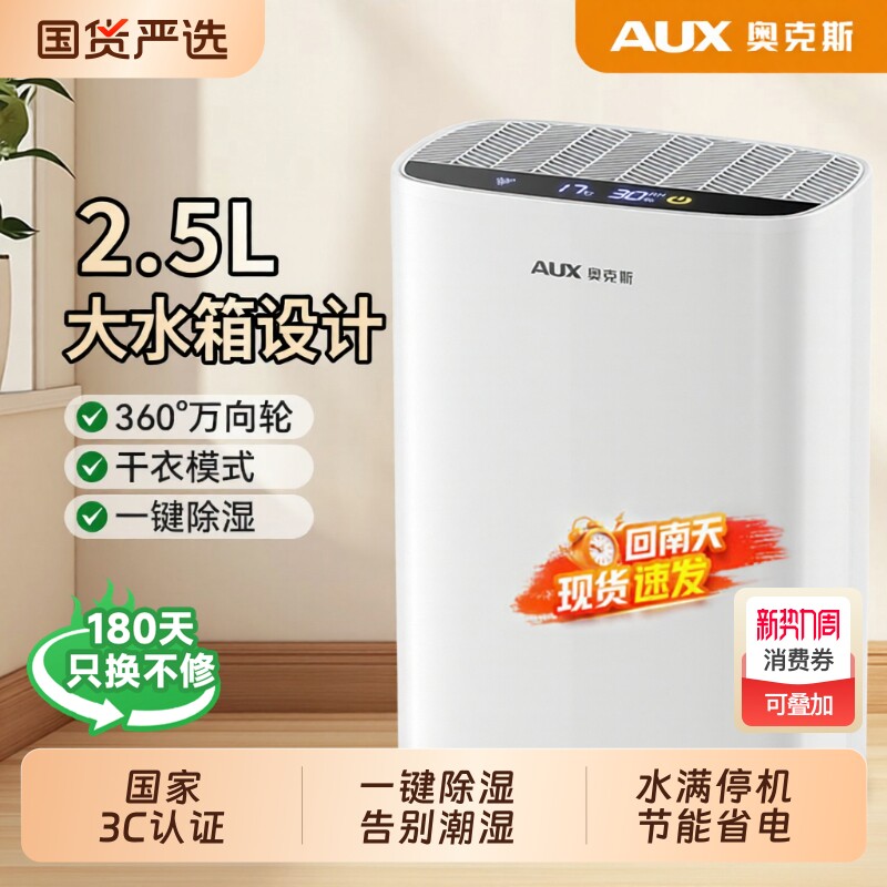 奥克斯除湿机家用抽湿机轻音吸湿器除潮器小型除湿器排水回南天