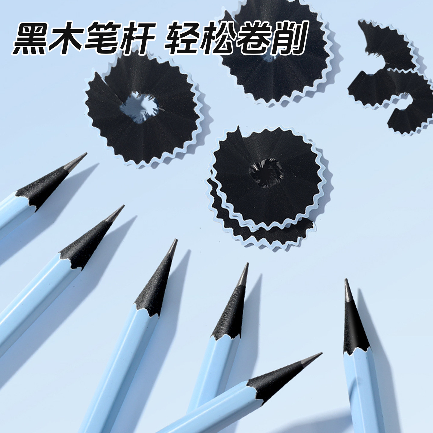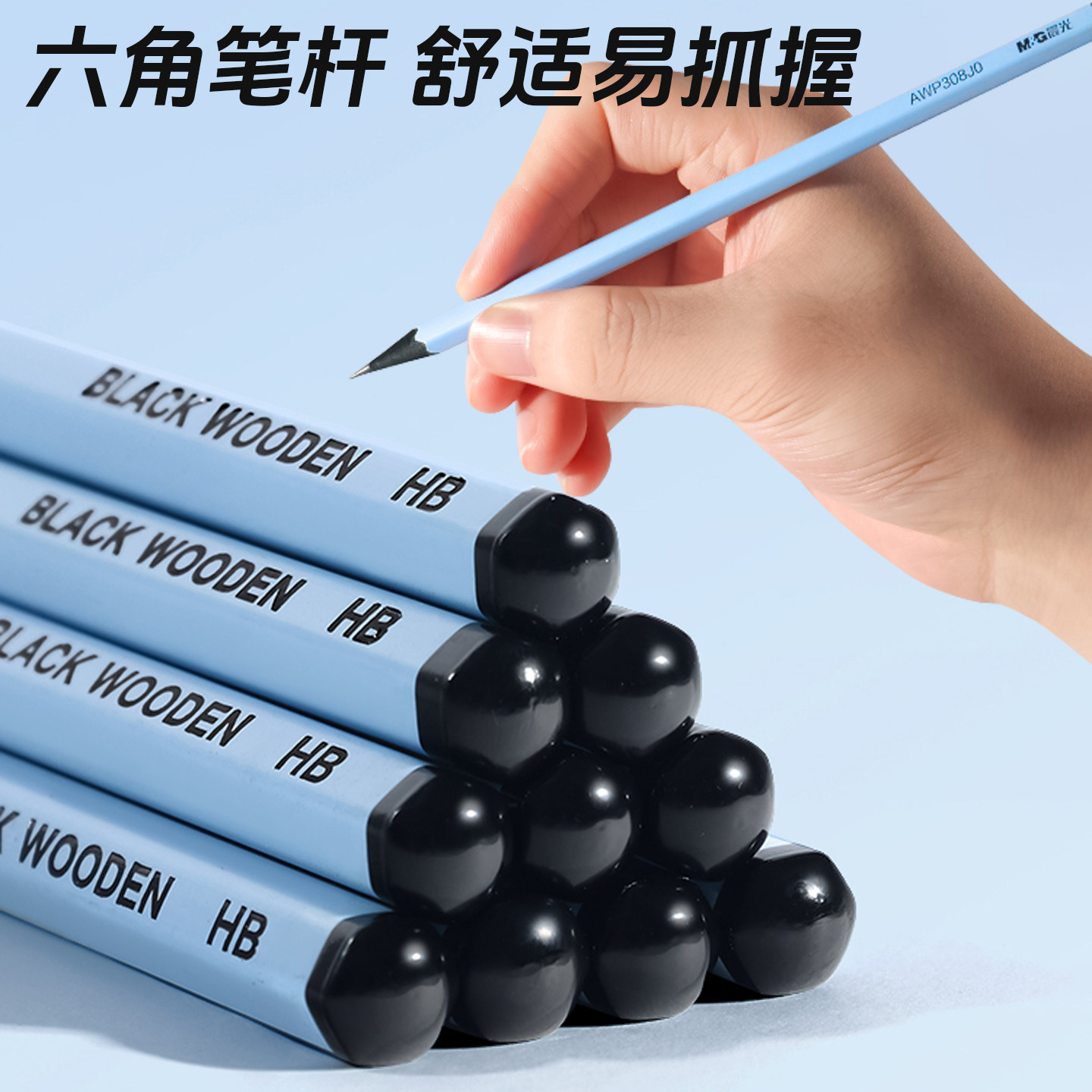 晨光蓝杆黑木铅笔小学生专用一年级二年级HB六角杆铅笔幼儿园初学者儿童练字2b学生考试安全无铅毒卷笔刀橡皮