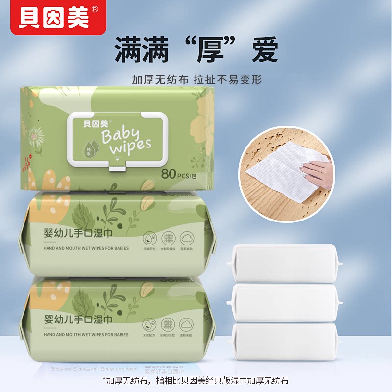贝因美婴儿湿巾纸新生手口专用宝宝湿纸巾纯水擦脸家庭大包清洁