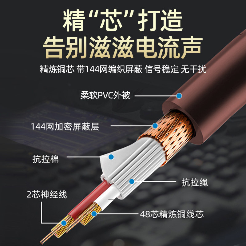 大三芯6.5mm音频线公对公电钢琴音箱6.35双声道立体声TRS平衡线